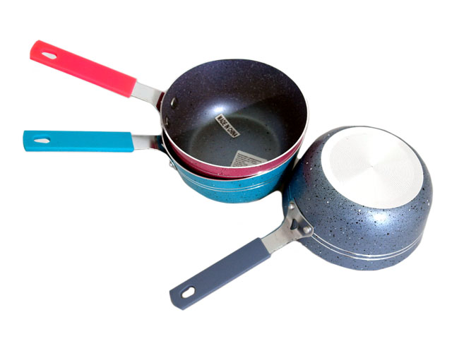 Алуминиева касерола с каменно покритие и със силиконова дръжка, с размер 15,5 х7 см.