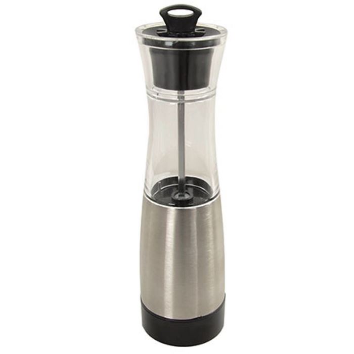 Мелничката е изработена от стъкло, метал и пластмаса.