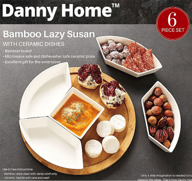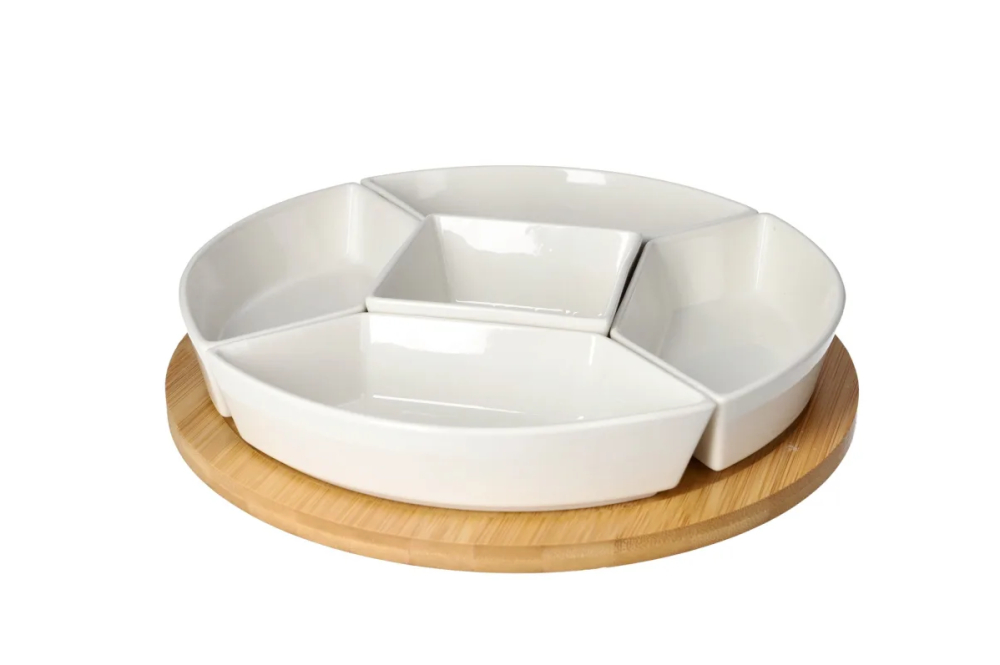 Bamboo Lazy Susan с керамични купички – стилно сервиране за всеки повод