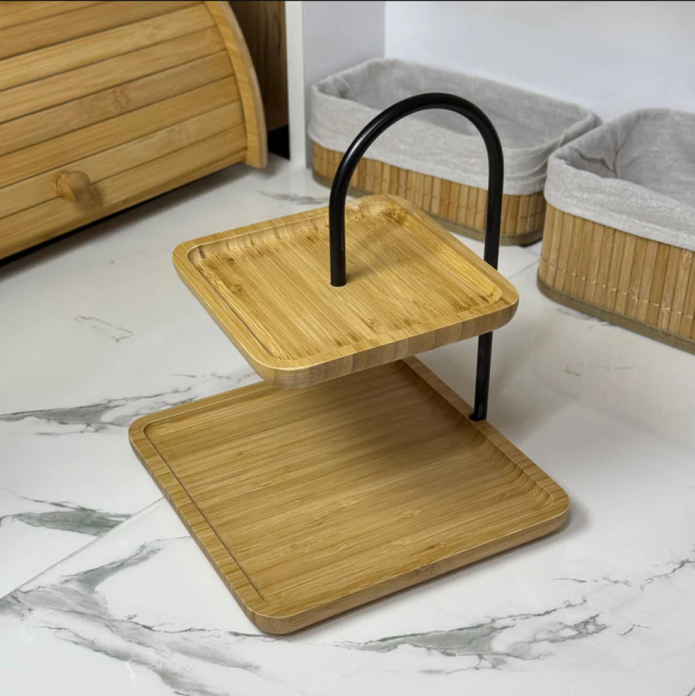 Двуетажна бамбукова стойка за сервиране Bambu Luxe – елегантност във всяка хапка
