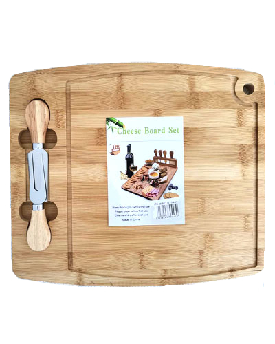Бамбукова дъска с нож и вилица за сирена 33 х 29 см.