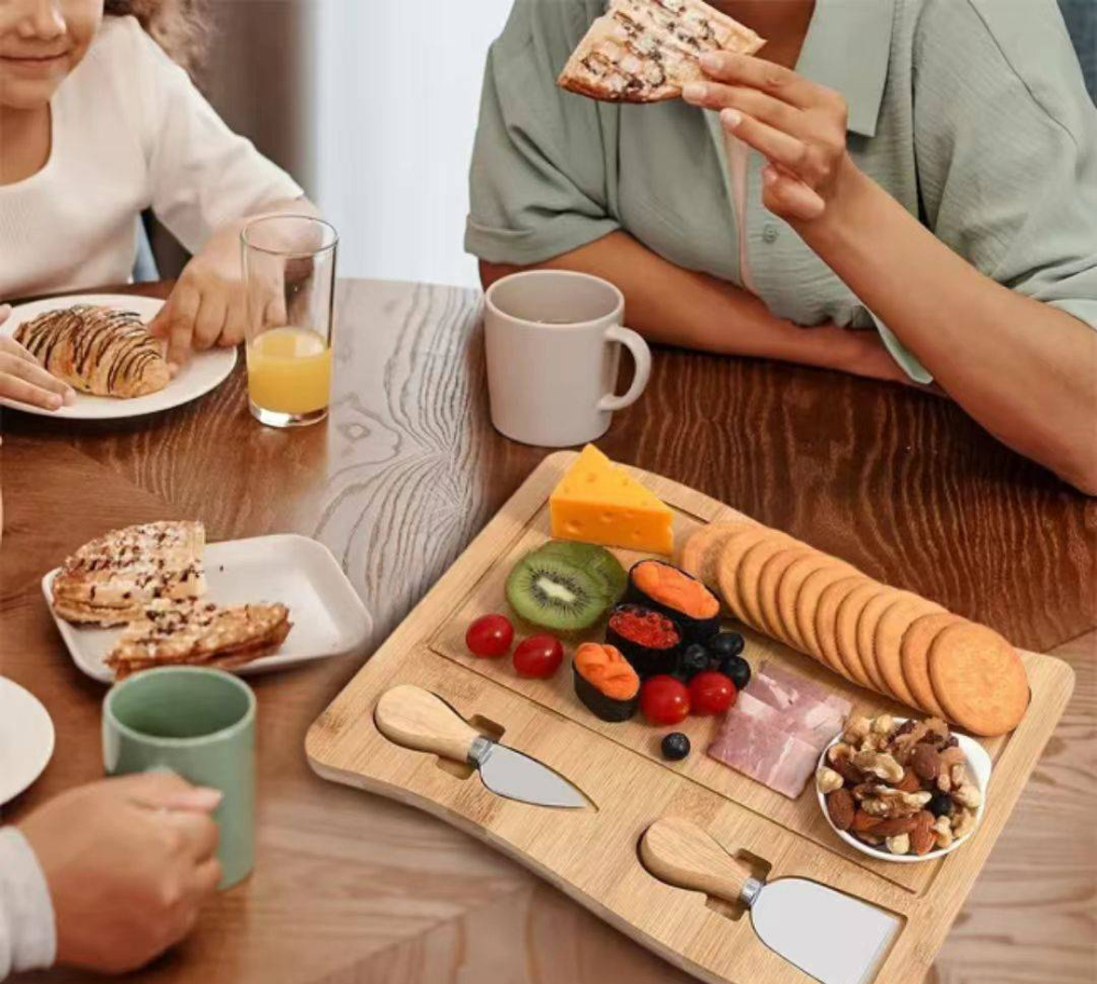 Бамбукова дъска за рязане с комплект ножове за сирена – стил и практичност в кухнята