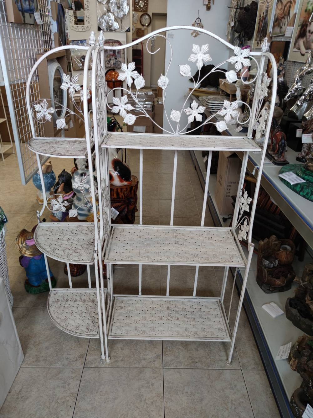Рафтът е украсен с декоративни растения, изработени от метал.