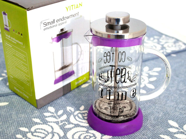 Пресата за чай се състои от стъклена кана, основа, капак и бутало от неръждаема стомана.