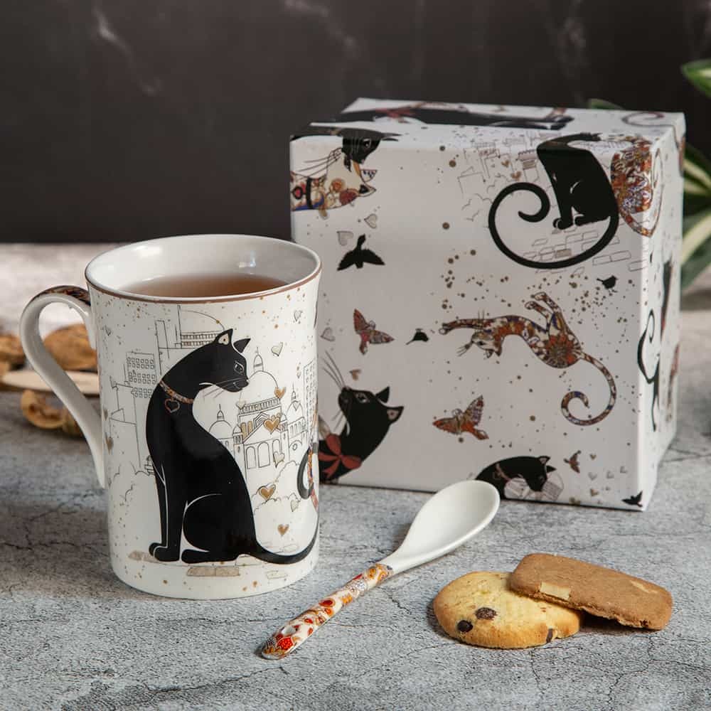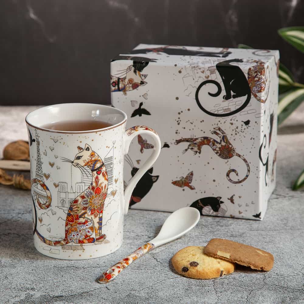 Чаша с лъжичка от фин порцелан, "Котките" 300 мл.