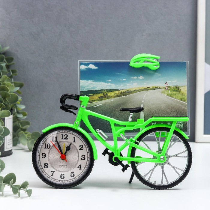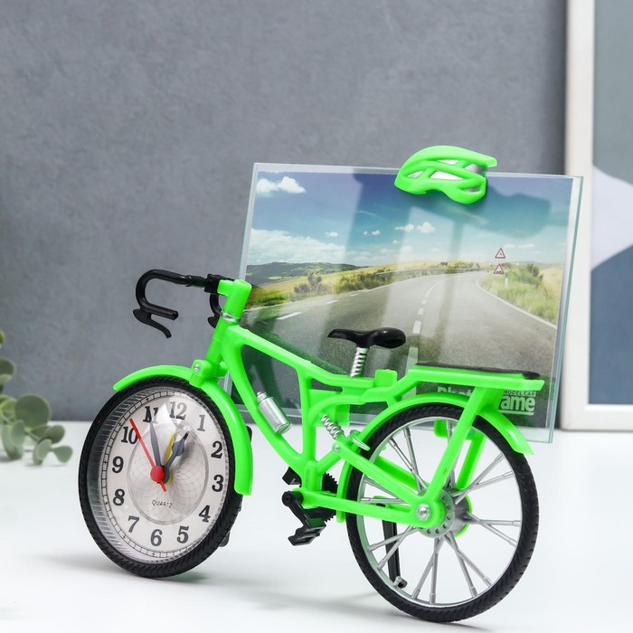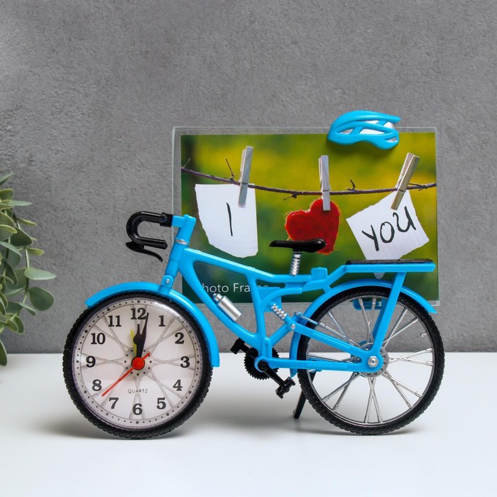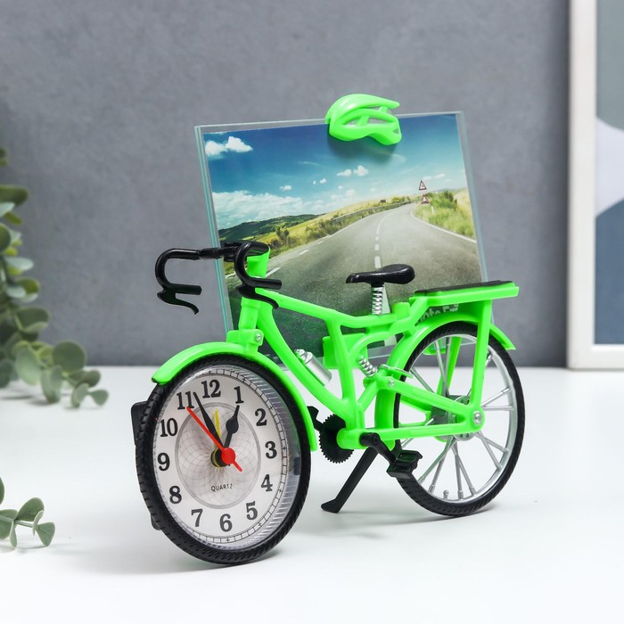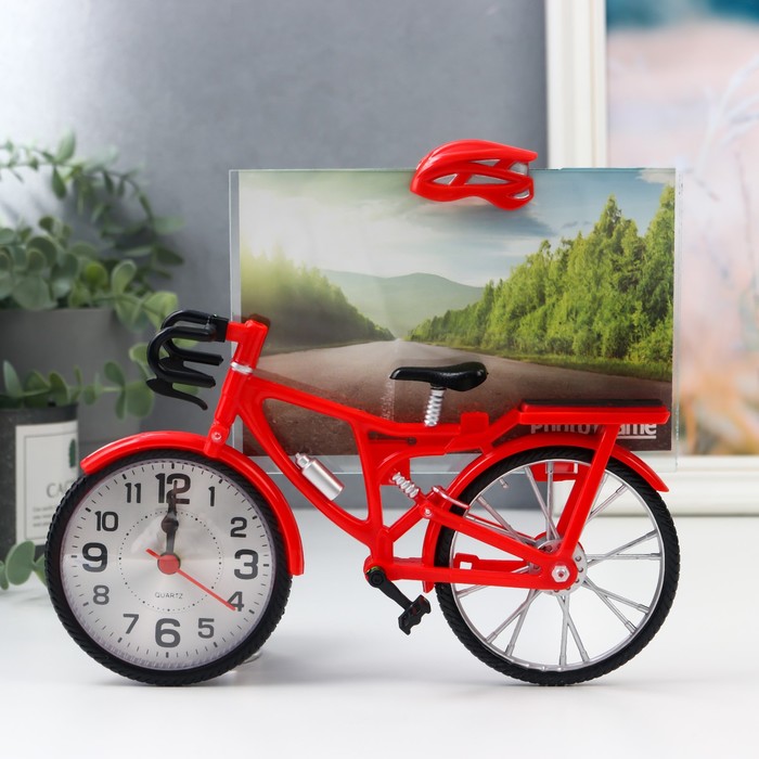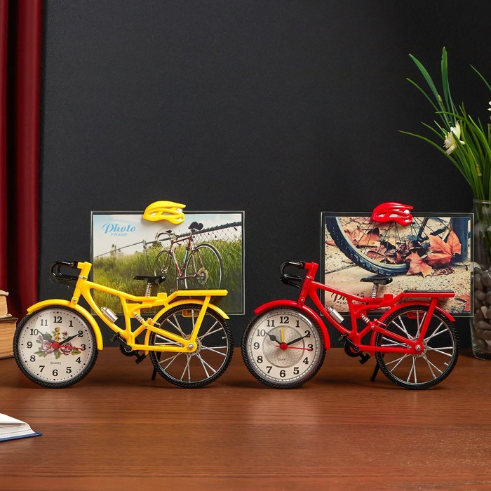 Часовникът е изработен от пластмаса и метал във формата на колело.