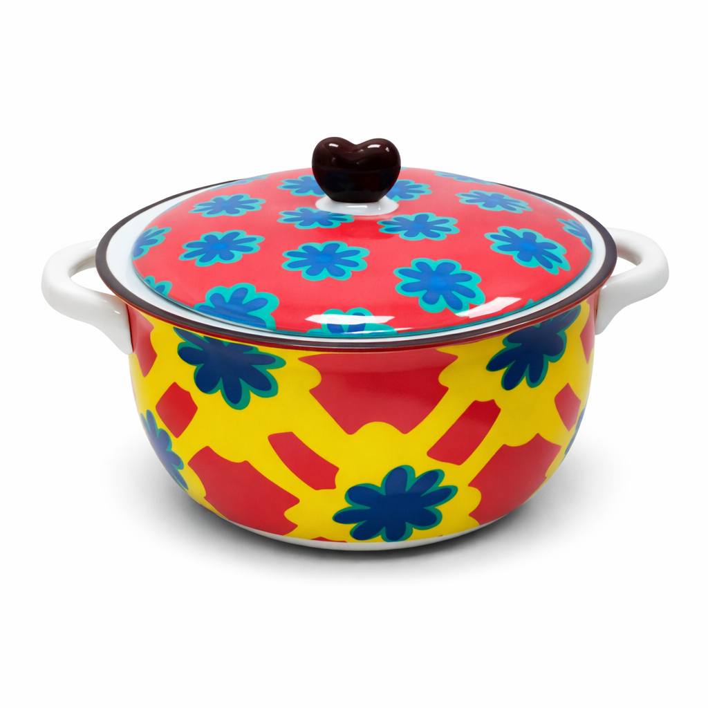 Цветна керамична тенджера за супа 3.8L – флорална елегантност на трапезата