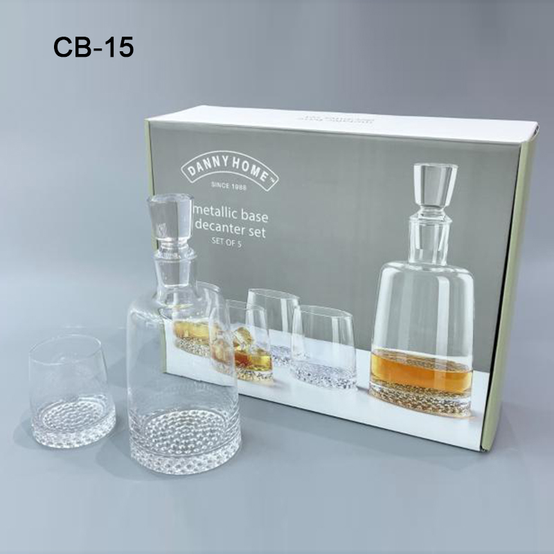 - Комплект от 5 части – включва стилен декантер с тапа и 4 чаши за уиски