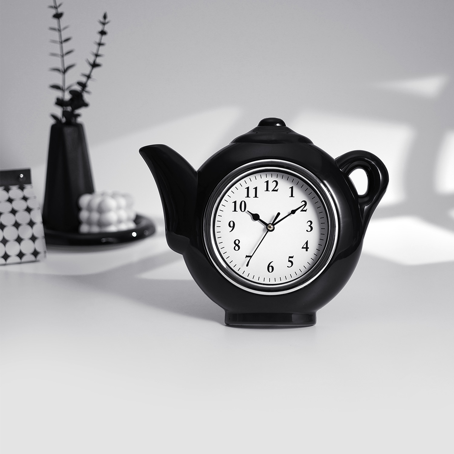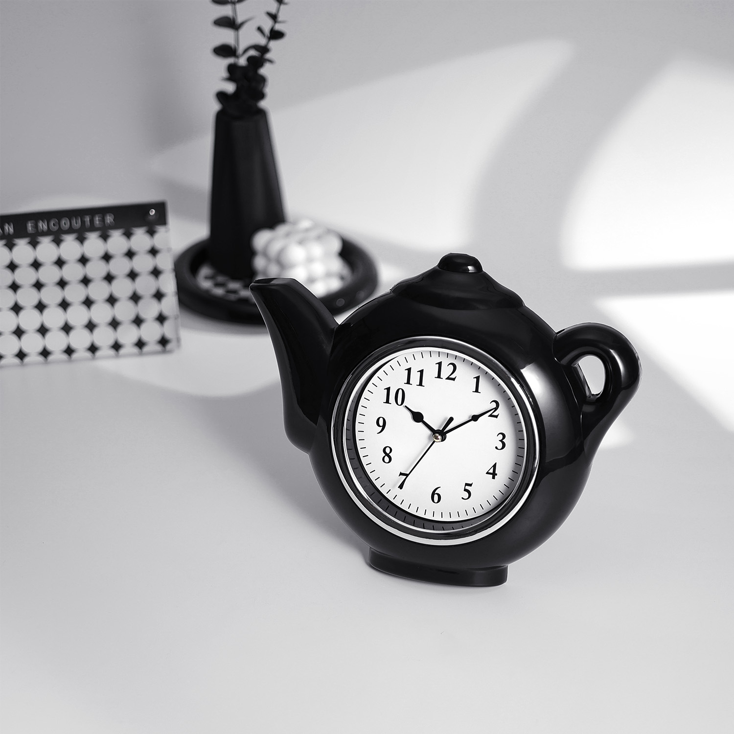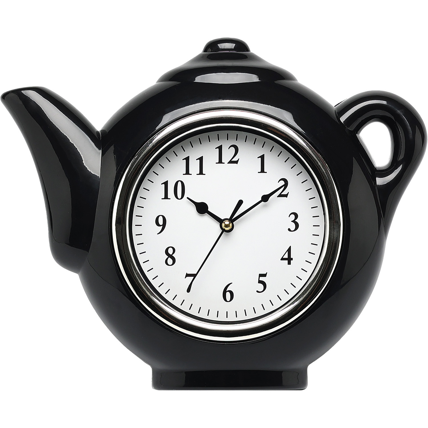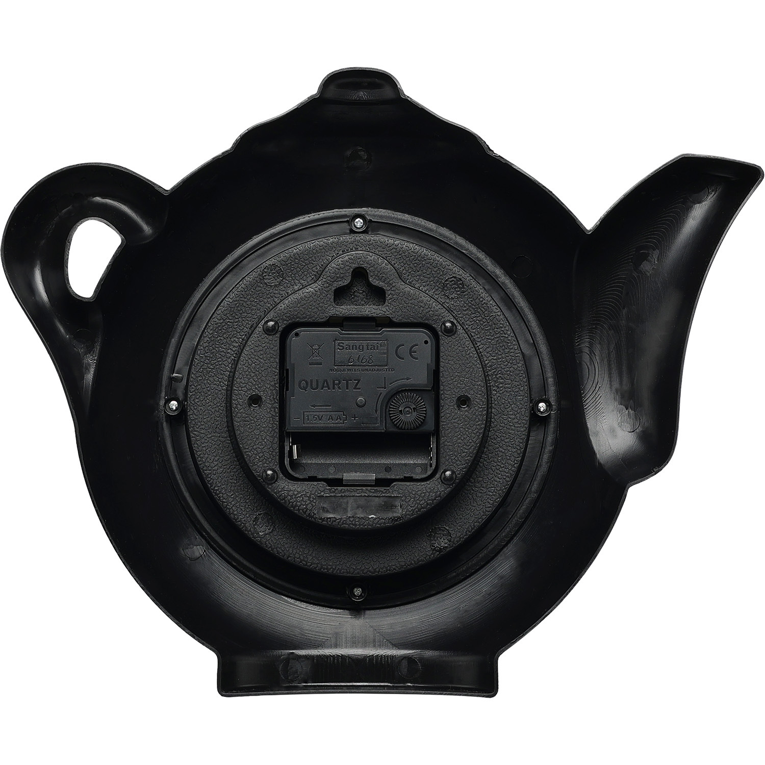 Стенен часовник за кухня или трапезария с уникален дизайн - нестандартен и оригинален, с форма на чайник, в черен цвят.