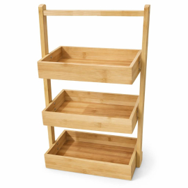 Поставката е изработена от дърво и метал. - Каква е формата на поставката за саксия?