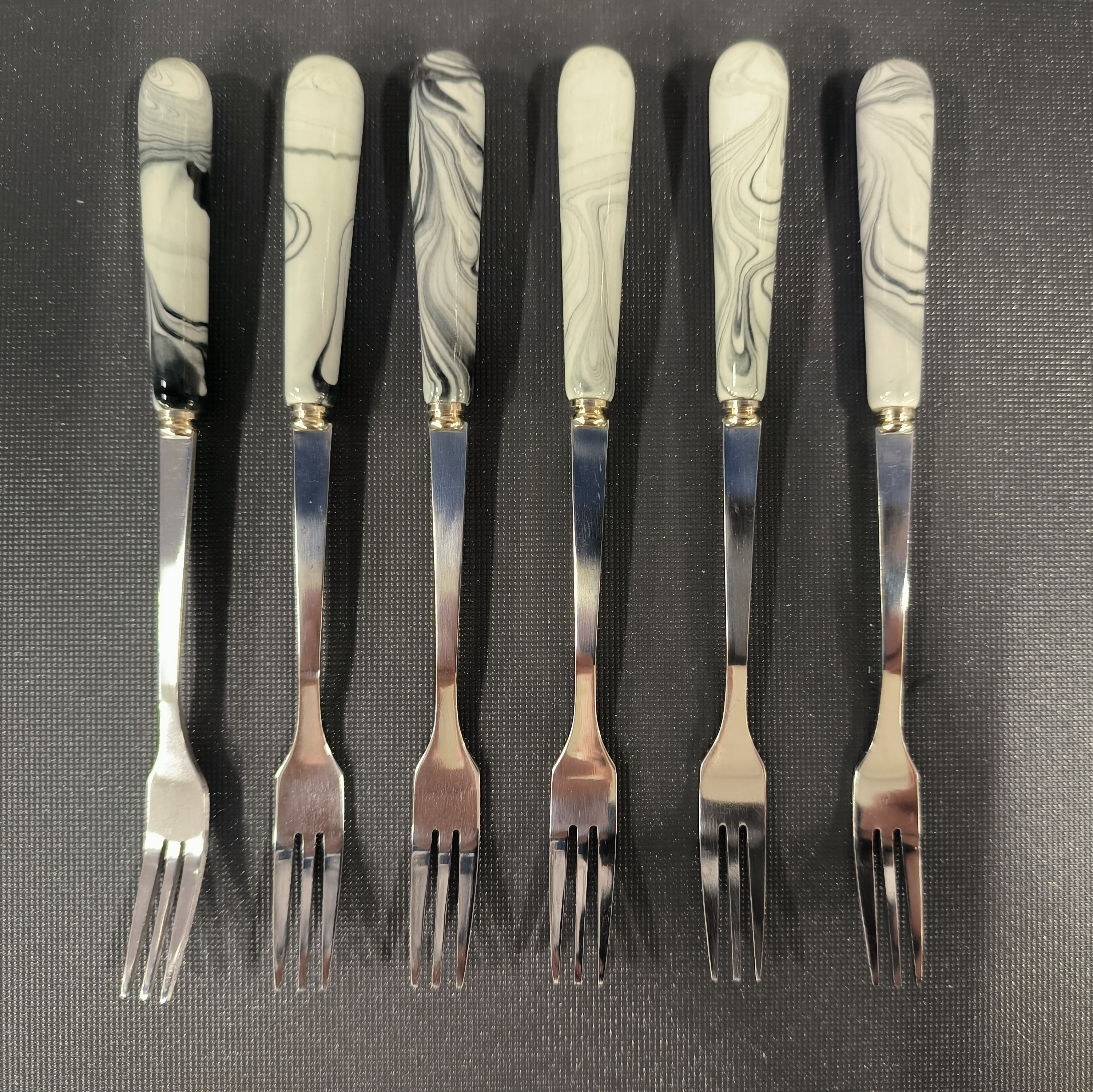 Комплект от 6 броя десертни вилички изработени от керамика и метал.