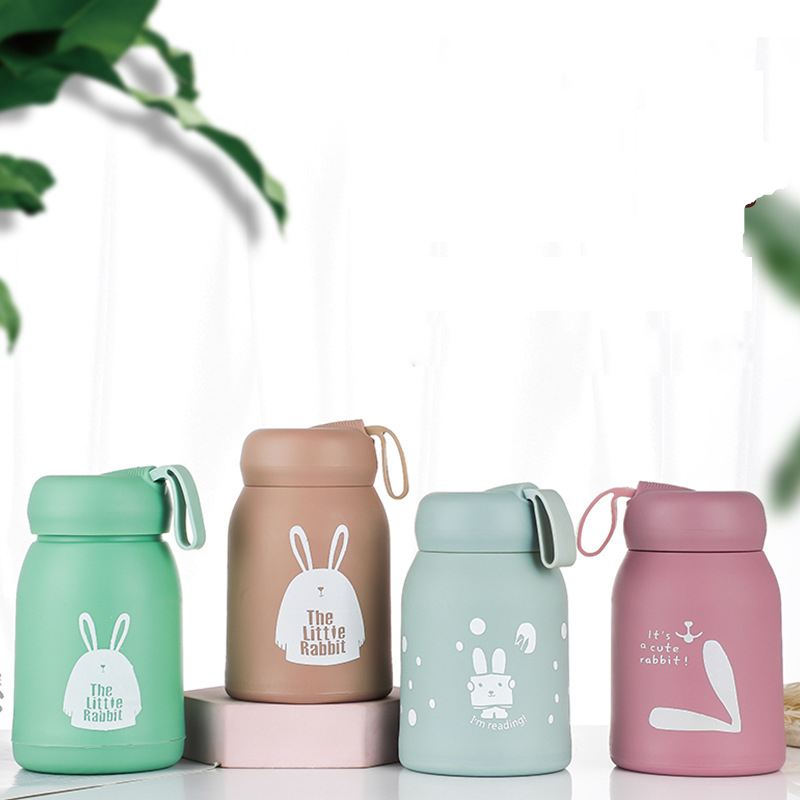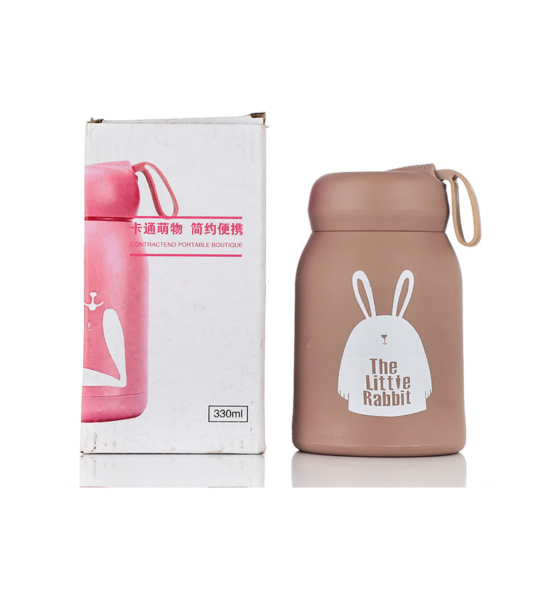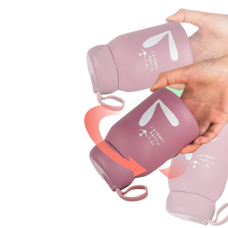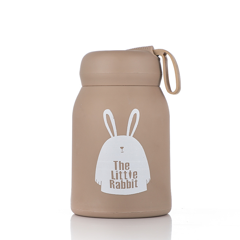Детска стъклена бутилка с пластмасово покритие 330 мл. "Rabbit" - Кафява