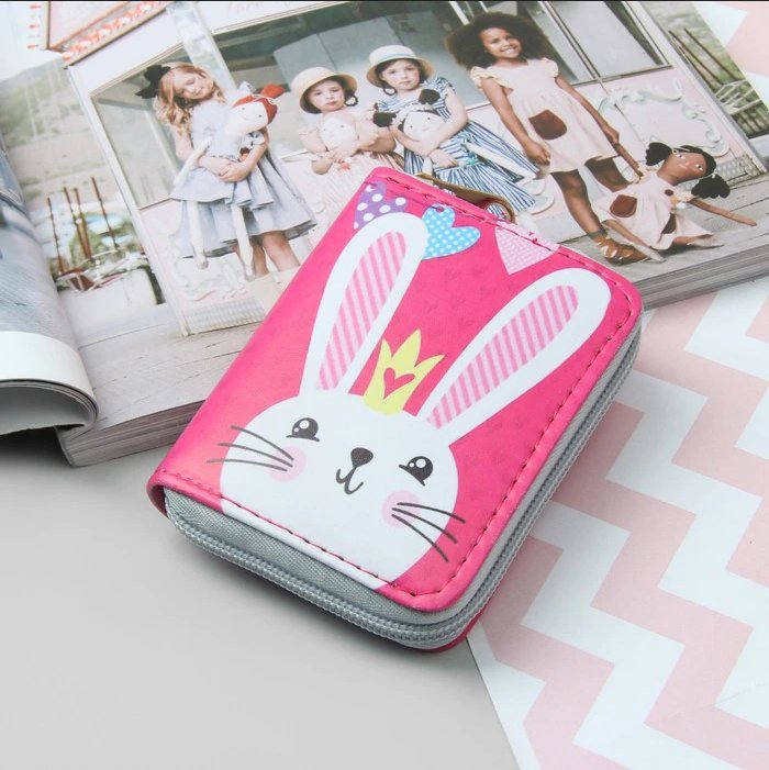 Портмонето е изработено от изкуствена кожа с цветен принт.