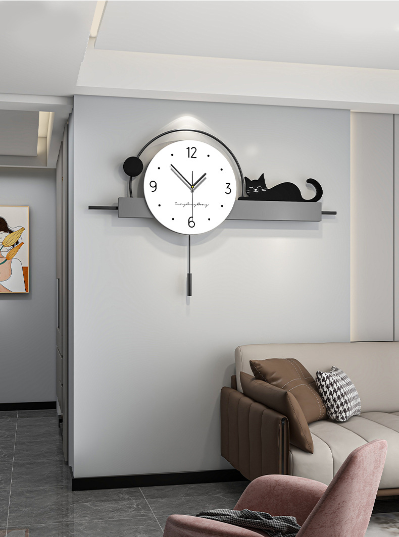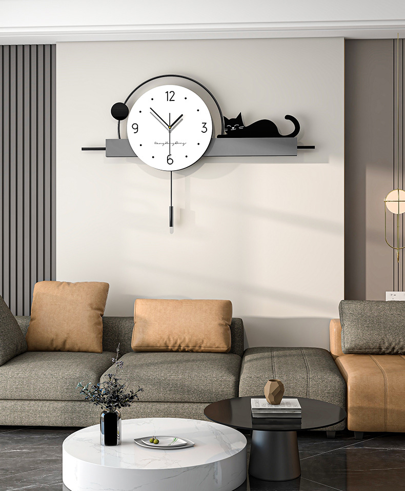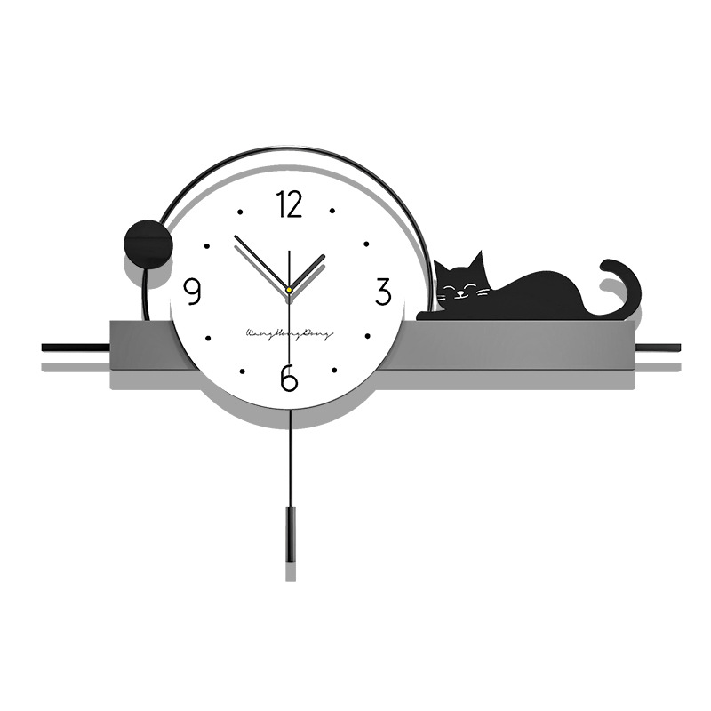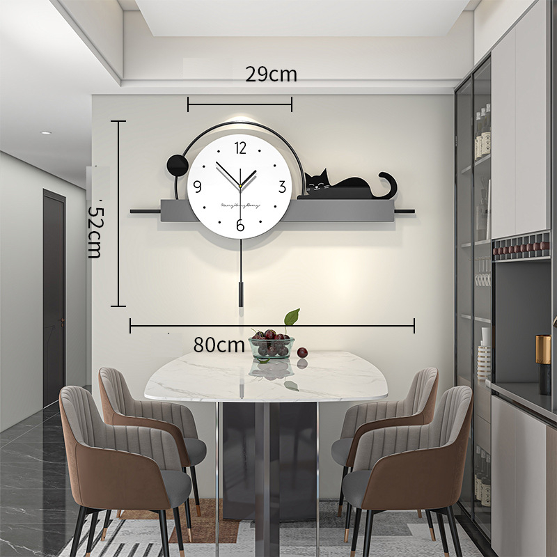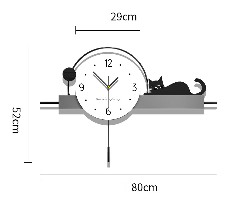 Дизайнерски стенен часовник "Черна Котка" 80 х 52 см