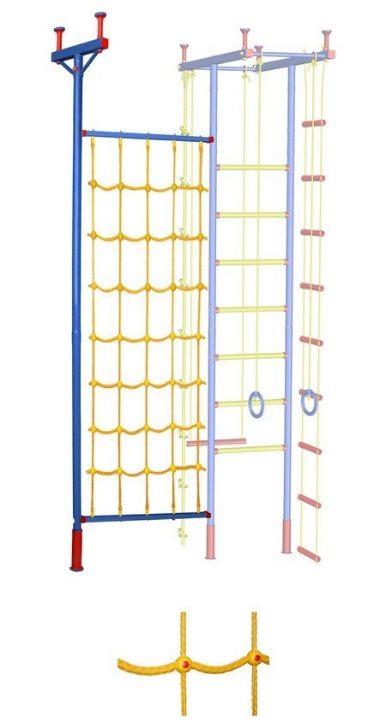 Комплексът има шведска стена, въжена стълба, въже за катерене, халки, трапец и въжена мрежа за катерене..