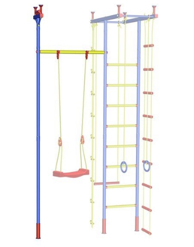Комплексът има шведска стена, трапец, халки, въжена стълба и въже за катерене. Към него има допълнителна стойка на която може да се монтира люлка.