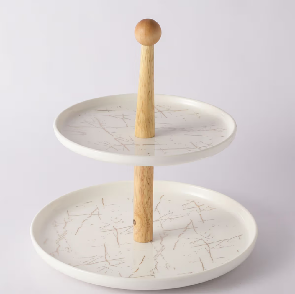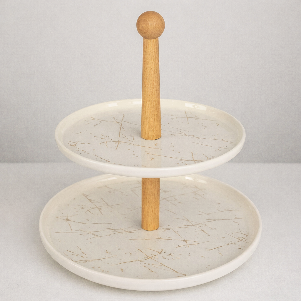 Керамична двуетажна стойка за сладки и плодове – елегантност за всяко сладко изкушение