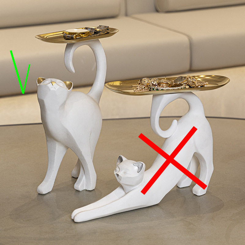 Фигура на Котка с поставка за дребни предмети - Бяла