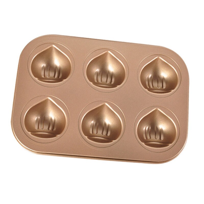 Формата е изработена от въглеродна стомана с незалепващо покритие във формата на лешници в златист цвят.