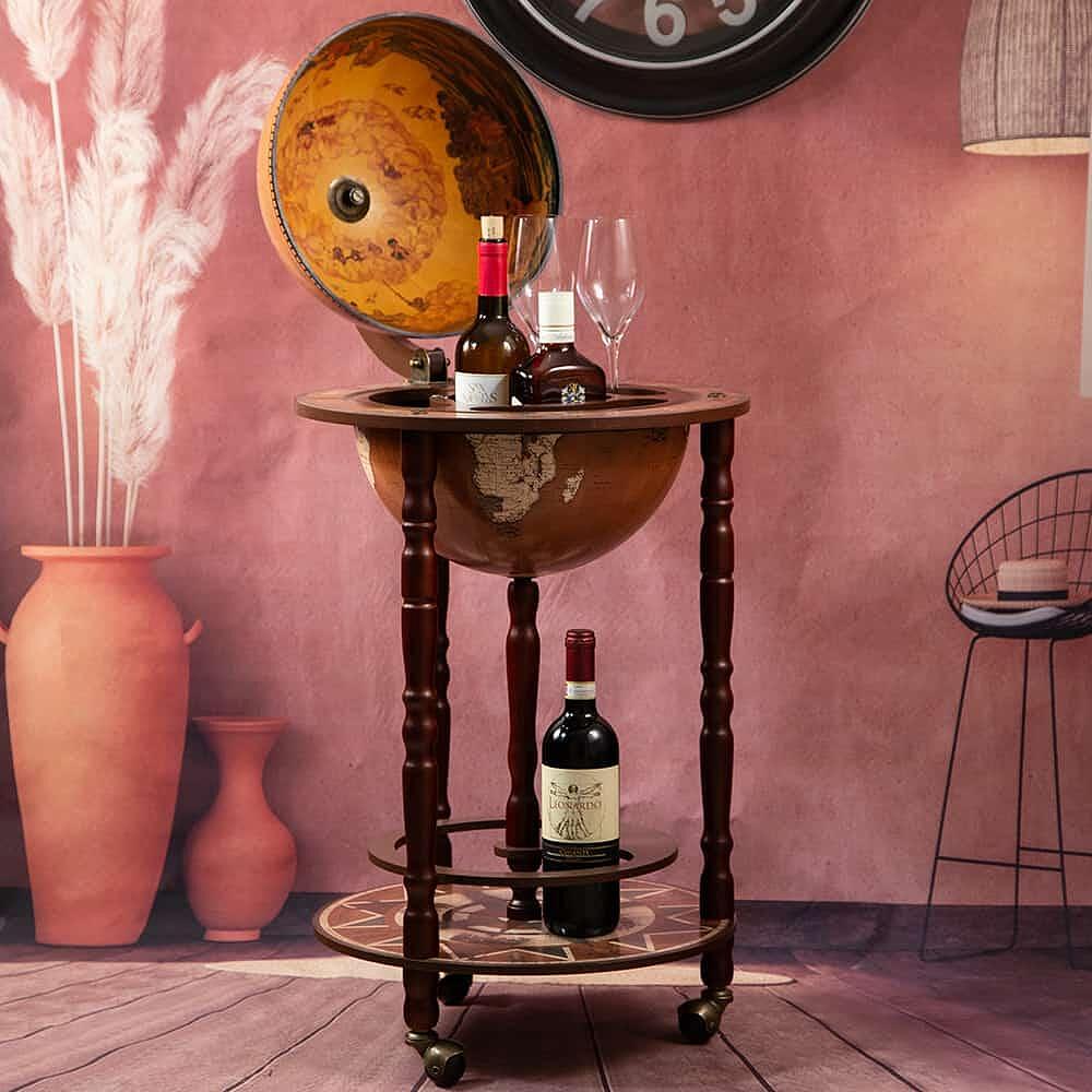 Глобус Бар изработен от хартия, метал, дърво и полимер.