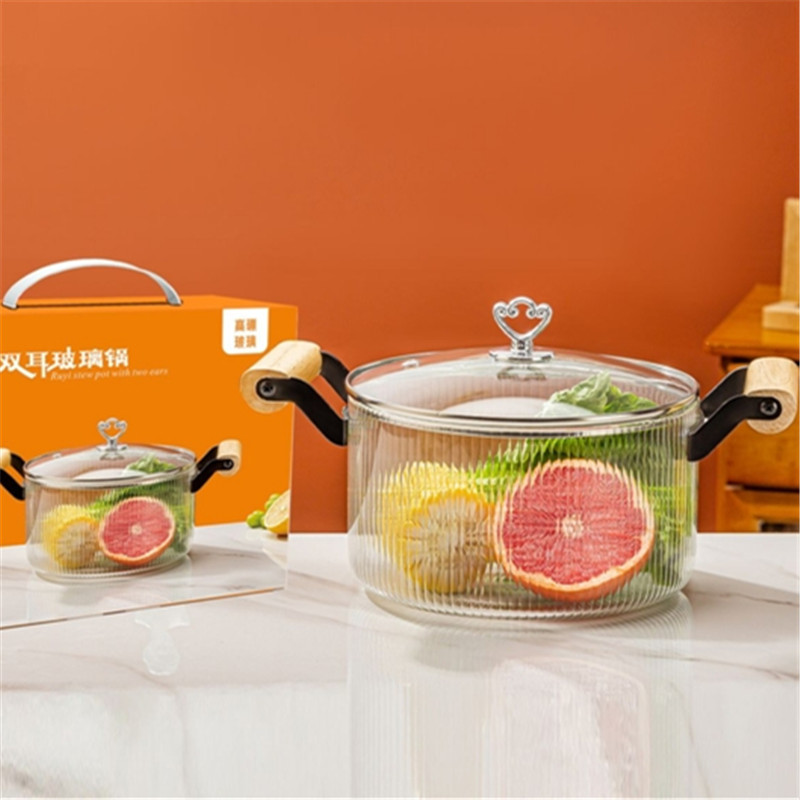 С големия си обем и здрава конструкция, тази стъклена тенджера е перфектна за приготвяне на супи, яхнии или задушени ястия за цялото семейство. Боросиликатното стъкло е устойчиво на термичен шок, а дървените дръжки осигуряват комфорт и безопасност при пренасяне.