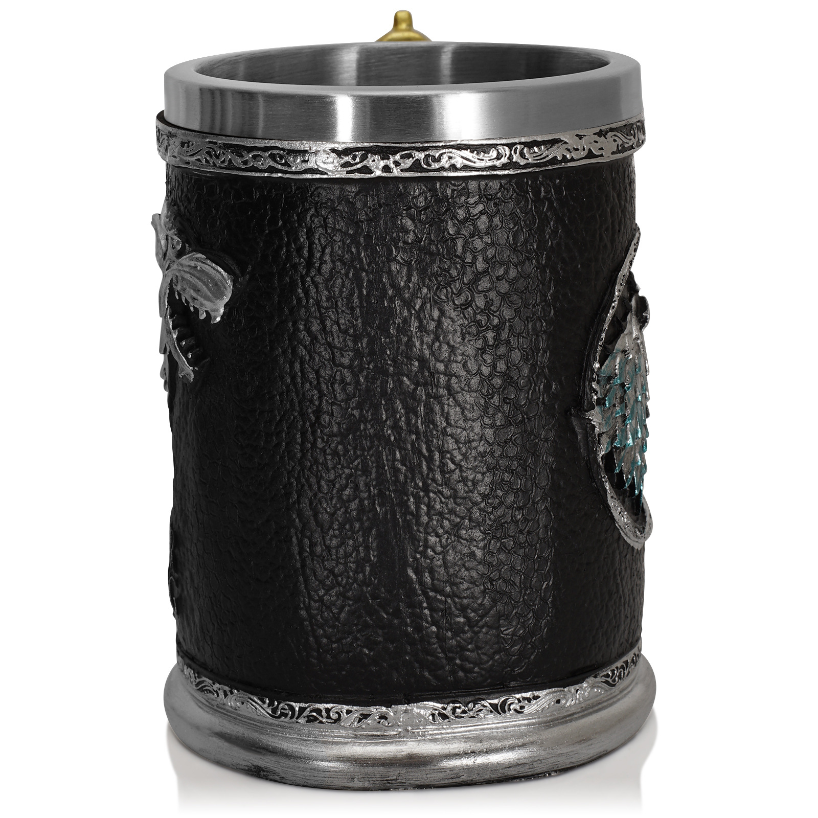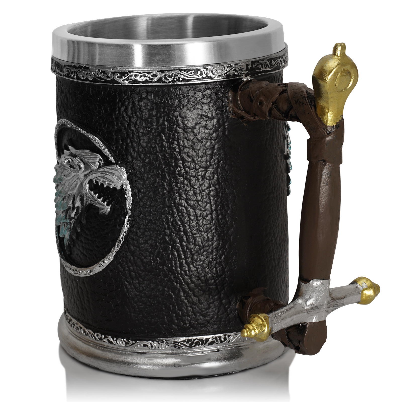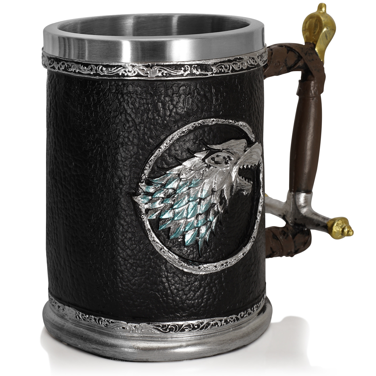 Чашата е изработена от неръждаема стомана 304 и смола (полирезин) с релефно готическо изображение на вълк от сериала "Winter is Coming".