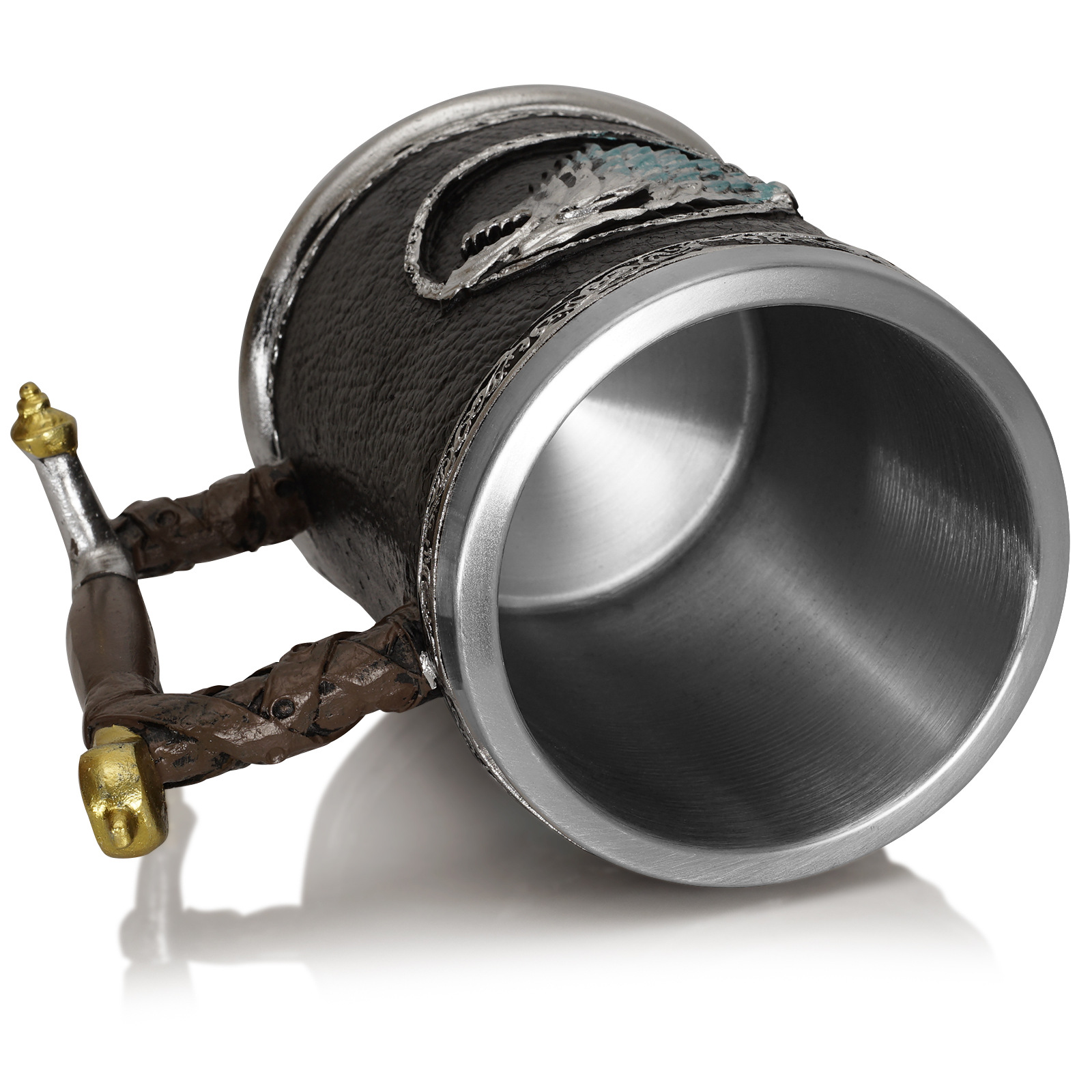 Чашата има удобна дръжка във формата на дръжка на меч.