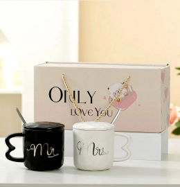 Чашата е в черно с кафява дръжка.