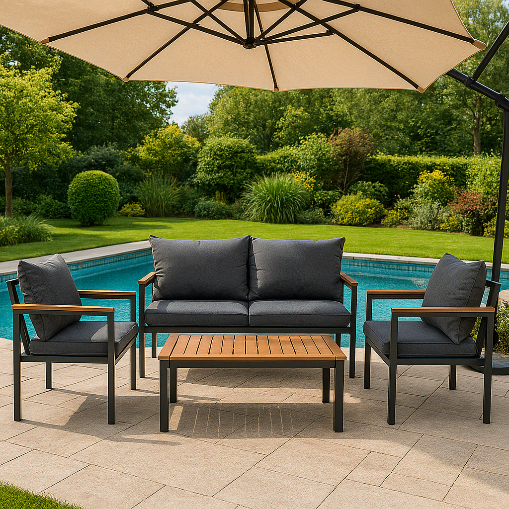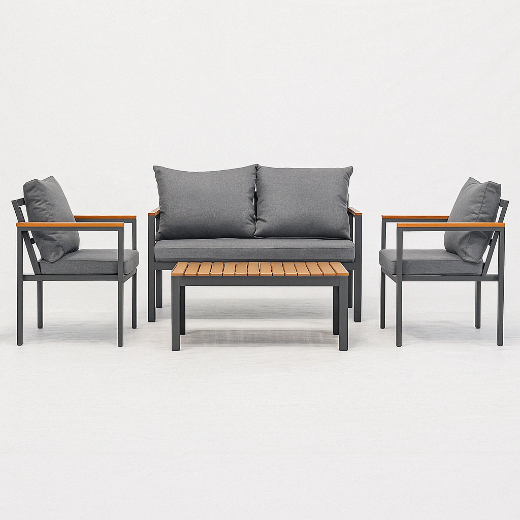 Здравина и устойчивост: Дървените рамки на комплектите са обикновено изработени от издръжливи и устойчиви видове дърво, като например тиково дърво. Ратанът, който често се използва за облагородяване на мебелите, е устойчив на влага и UV лъчи.