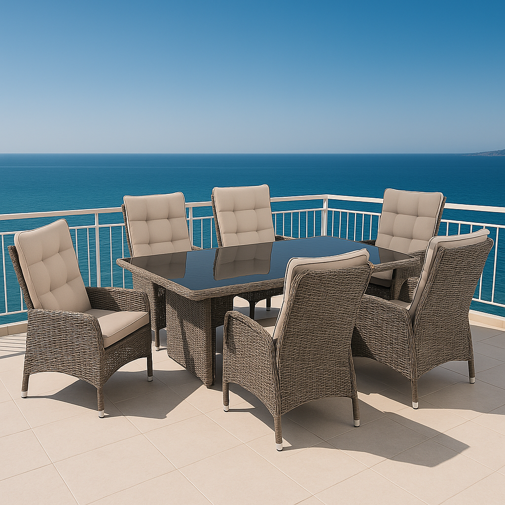 Градински ратанов комплект от 7 части - сгъваема версия (без газов амортисьор).
