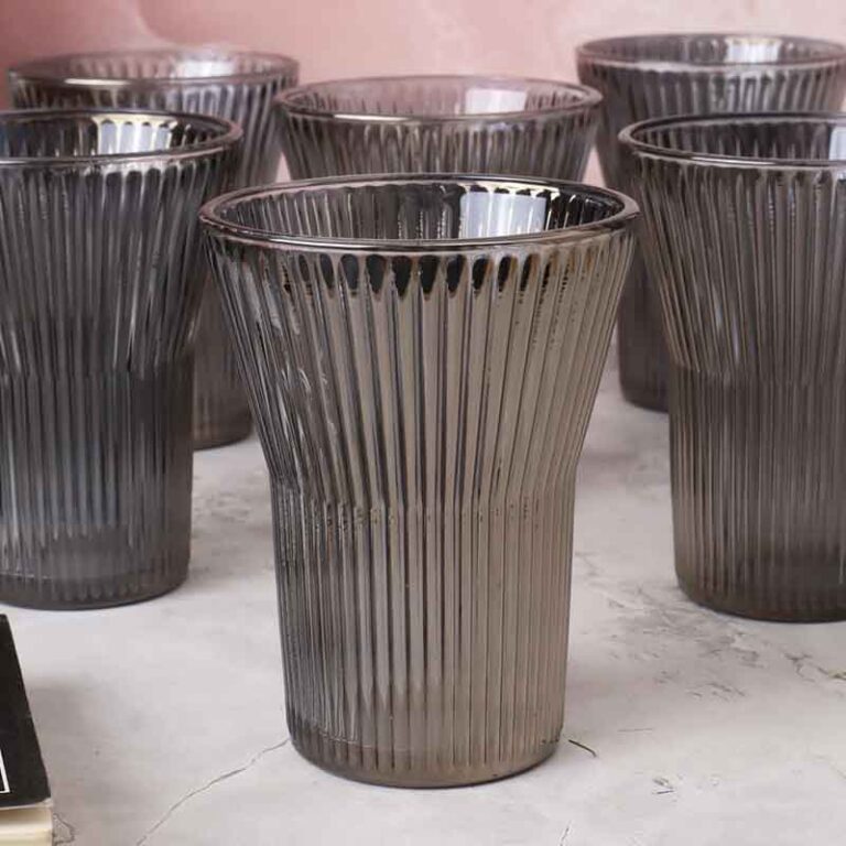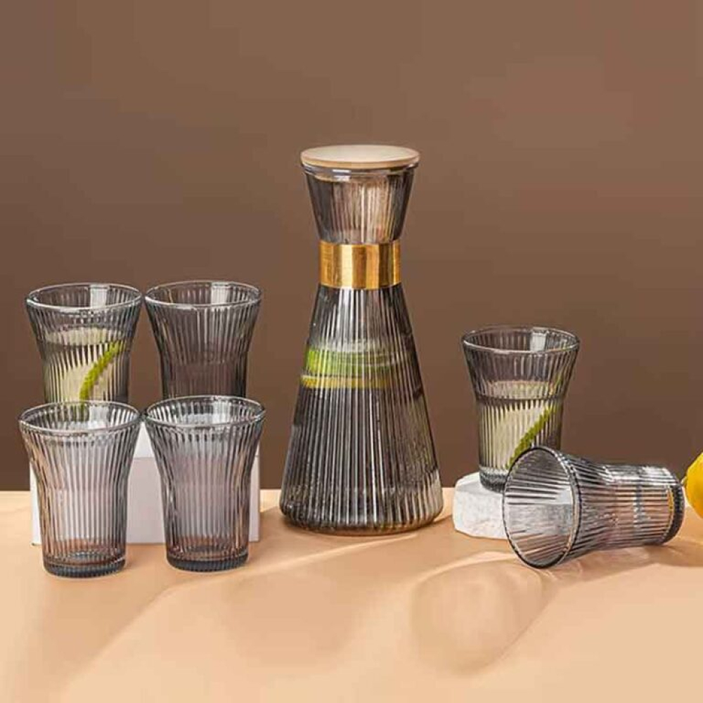 Добавете изтънченост към всяко сервиране с луксозния комплект стъклен графин и 6 чаши. Изработен от висококачествено опушено стъкло с елегантен набразден дизайн, този комплект съчетава модерна визия и функционалност, подходящ както за ежедневна употреба, така и за специални поводи.