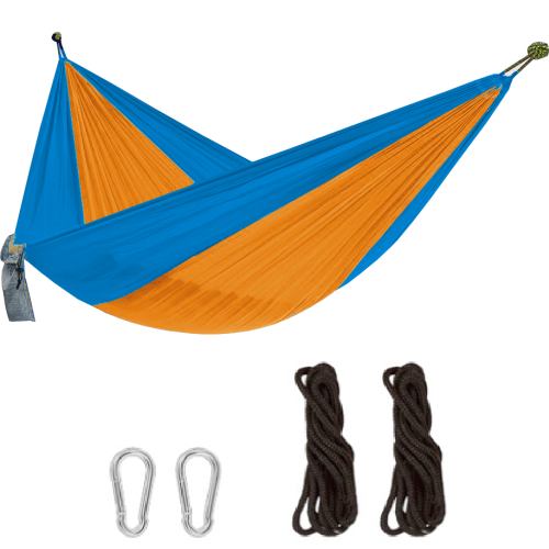 Към хамака има и два карабинера, и две допълнителни въжета за окачване (освен двете нанизани) с дължина по 2 метра.