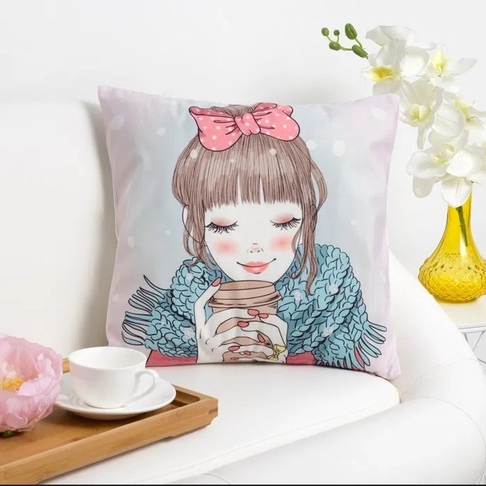 Завъртете в дома си уютна атмосфера с тази красива калъфка за възглавница. Изработена от висококачествен полиестер, тя не само ще допълни декора ви, но и ще ви осигури комфорт и удобство. Насладете се на моменти на почивка и релакс с красивото "Момиче с кафе" върху вашия диван или легло.