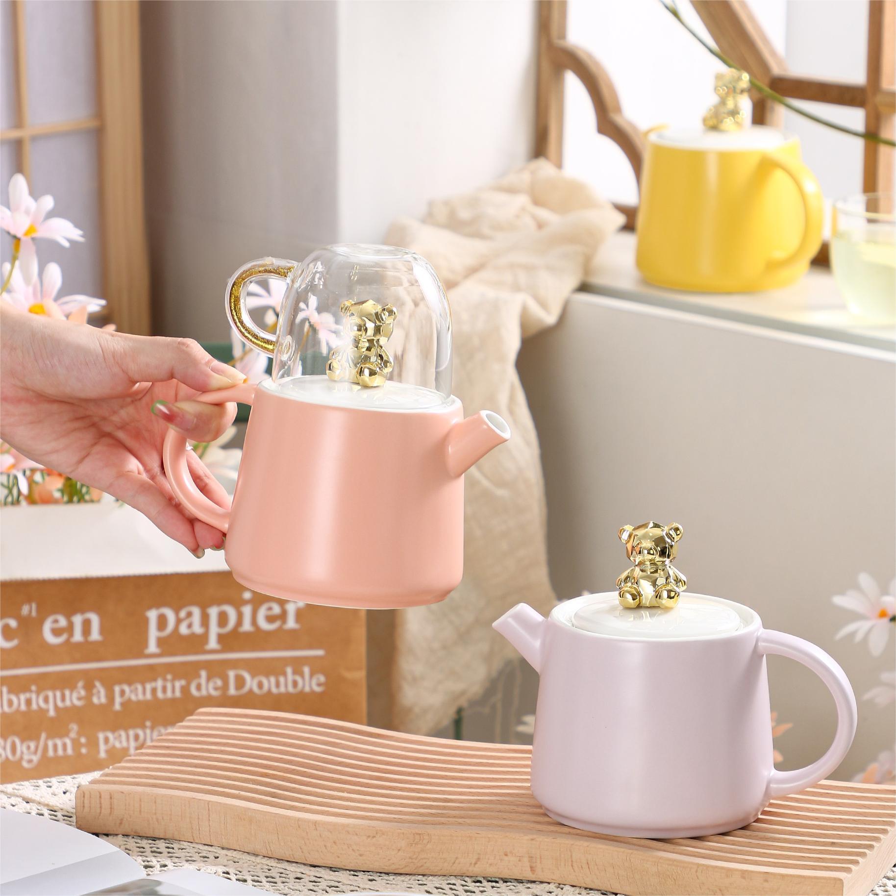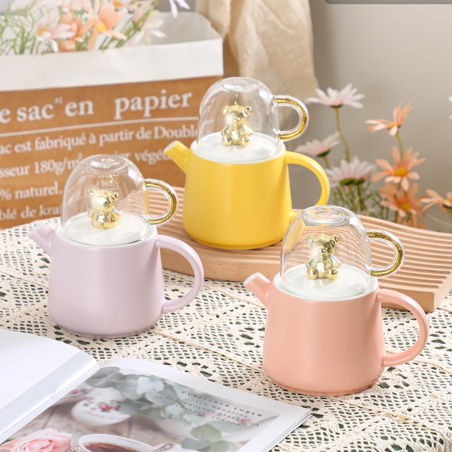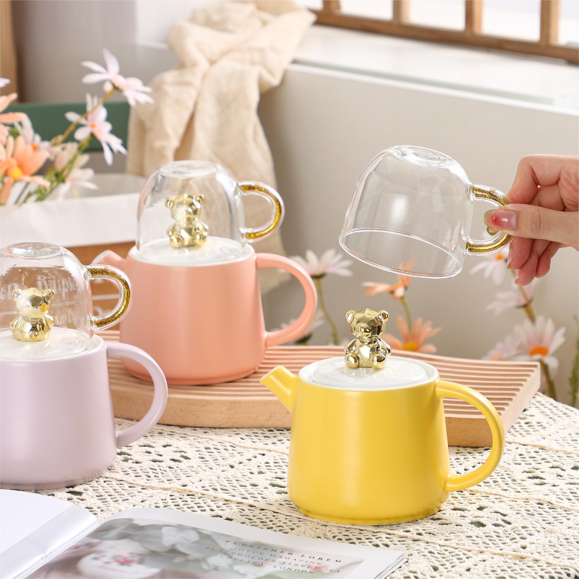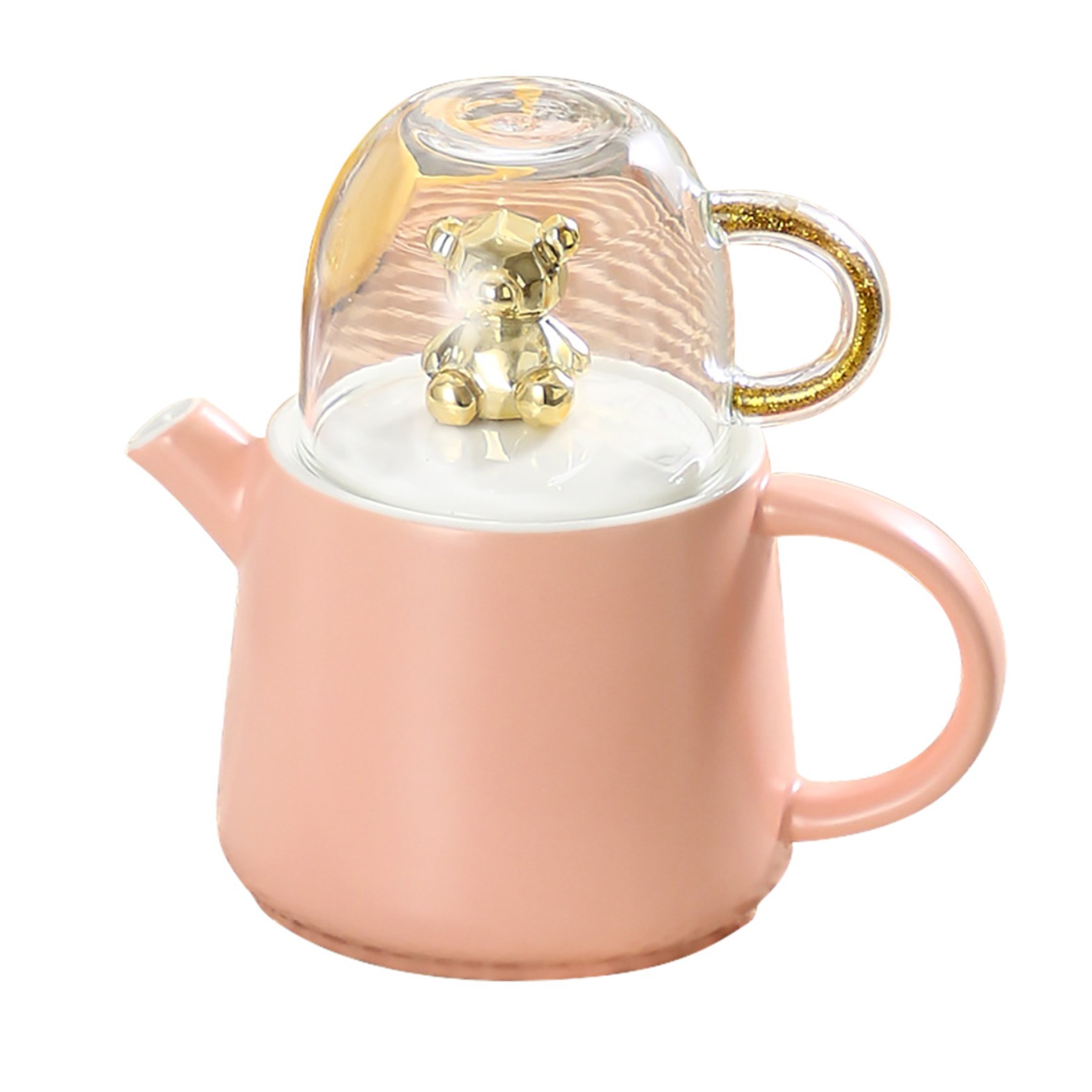 Добавете привкус на забавление и уют във вашата чайна церемония с този прекрасен керамичен чайник, който идва със стъклена чаша "Мече". Изработен с внимание към детайлите, този комплект е перфектният начин да направите чайното време по-специално.