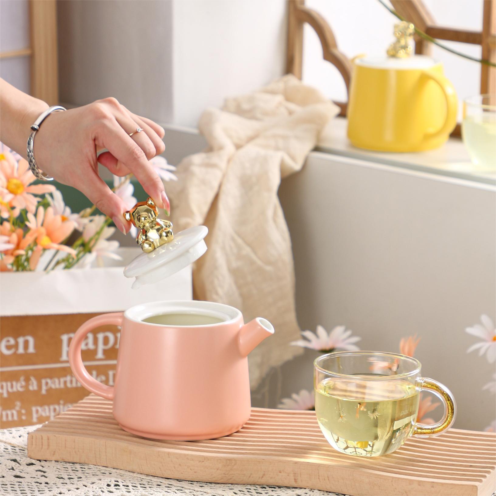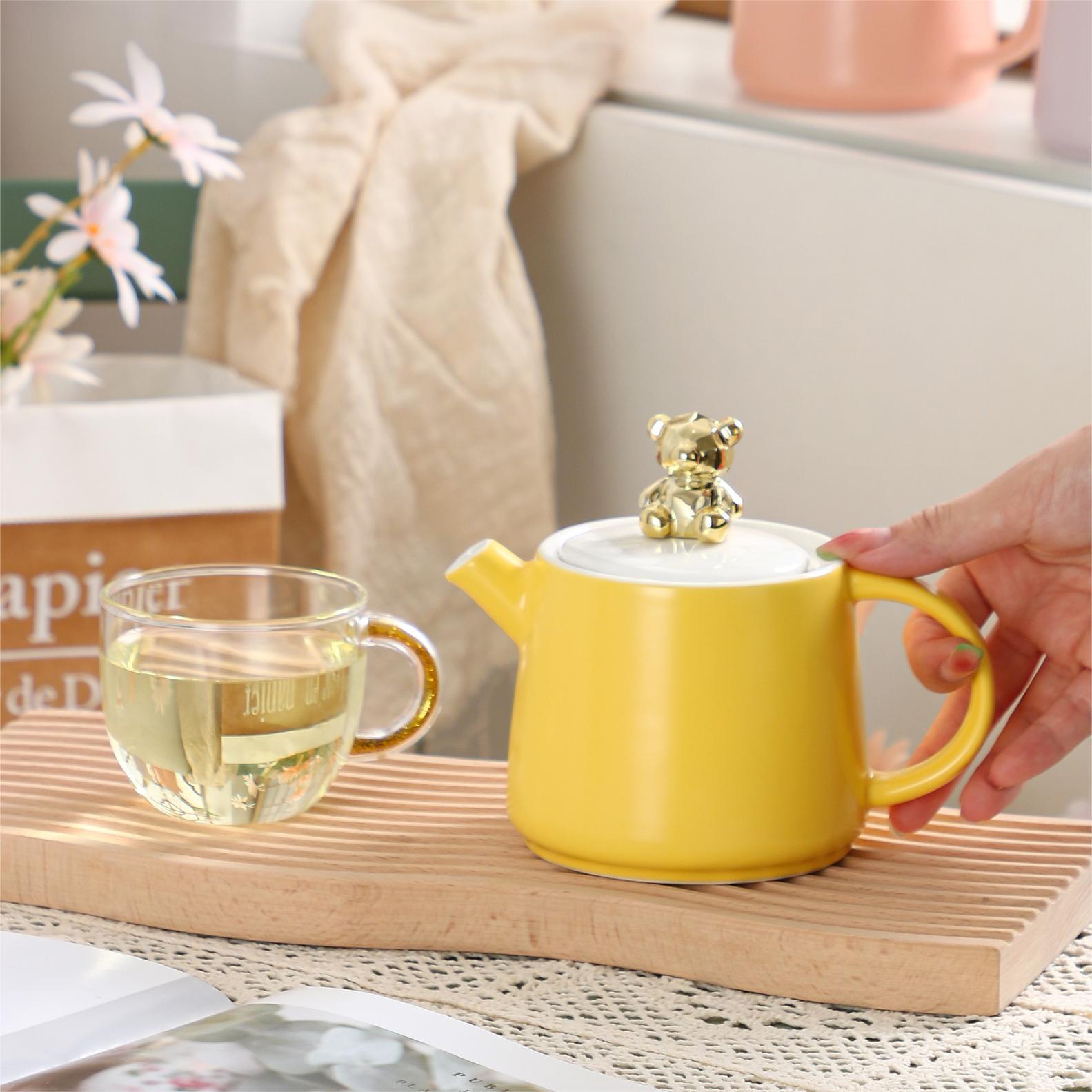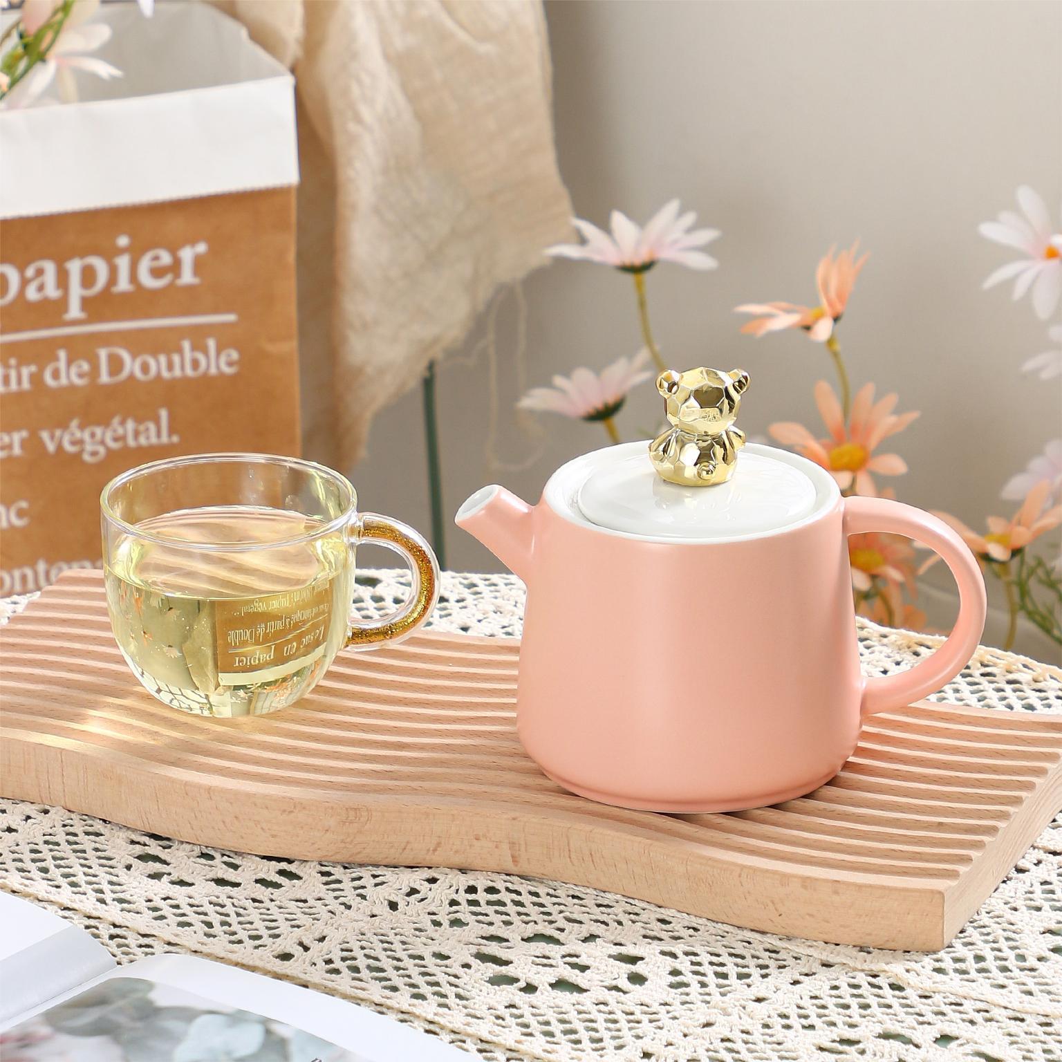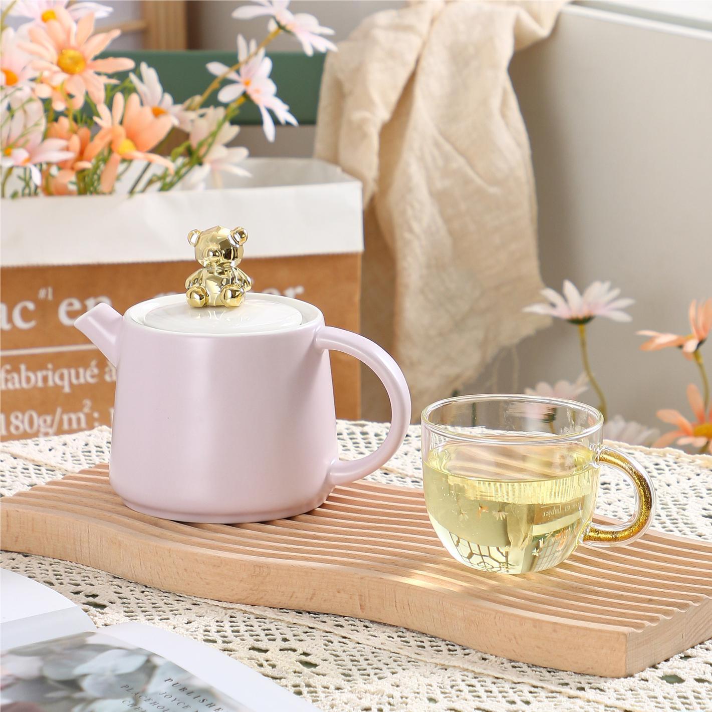 Добавете привкус на забавление и уют във вашата чайна церемония с този прекрасен керамичен чайник, който идва със стъклена чаша "Мече". Изработен с внимание към детайлите, този комплект е перфектният начин да направите чайното време по-специално.