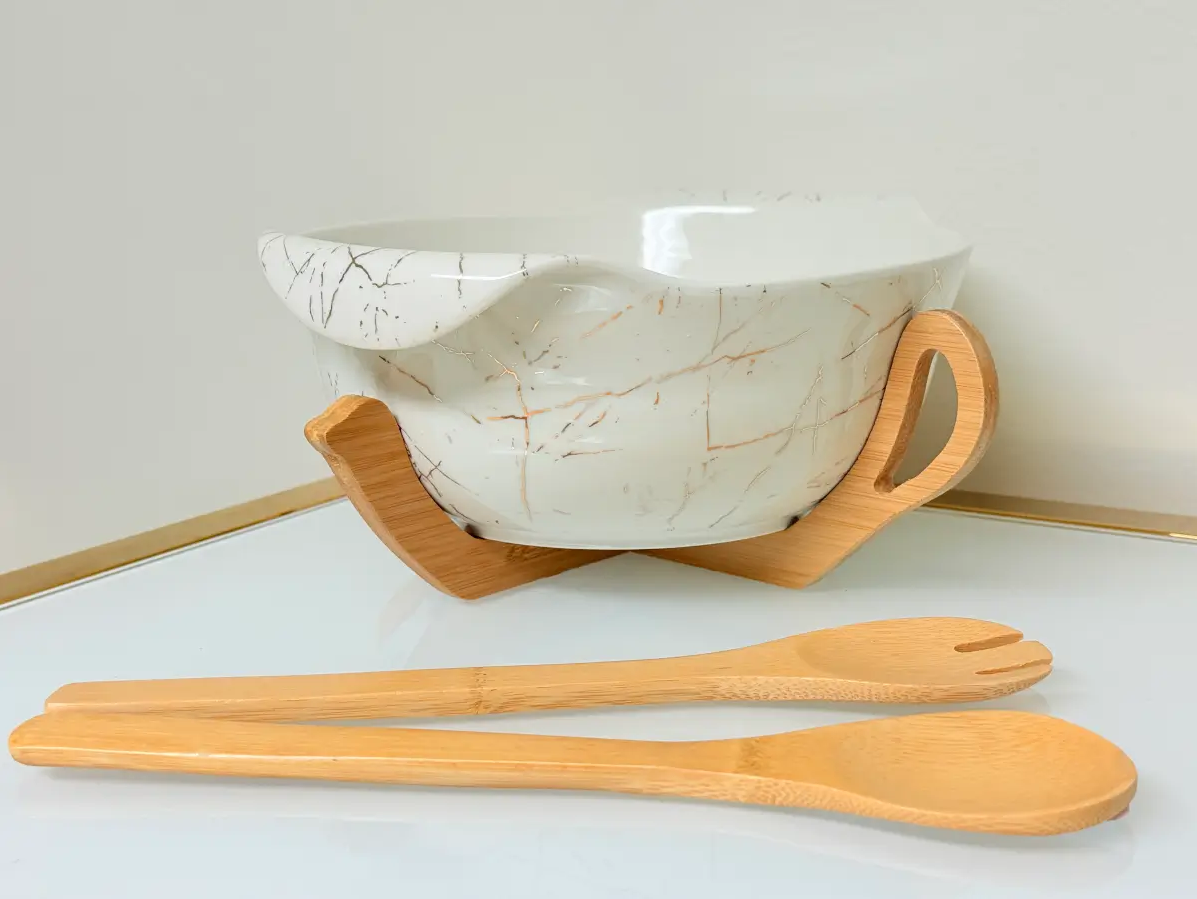 Подарете си удоволствие от сервирането с този изискан комплект за салата – съчетание от функционалност и естетика!
