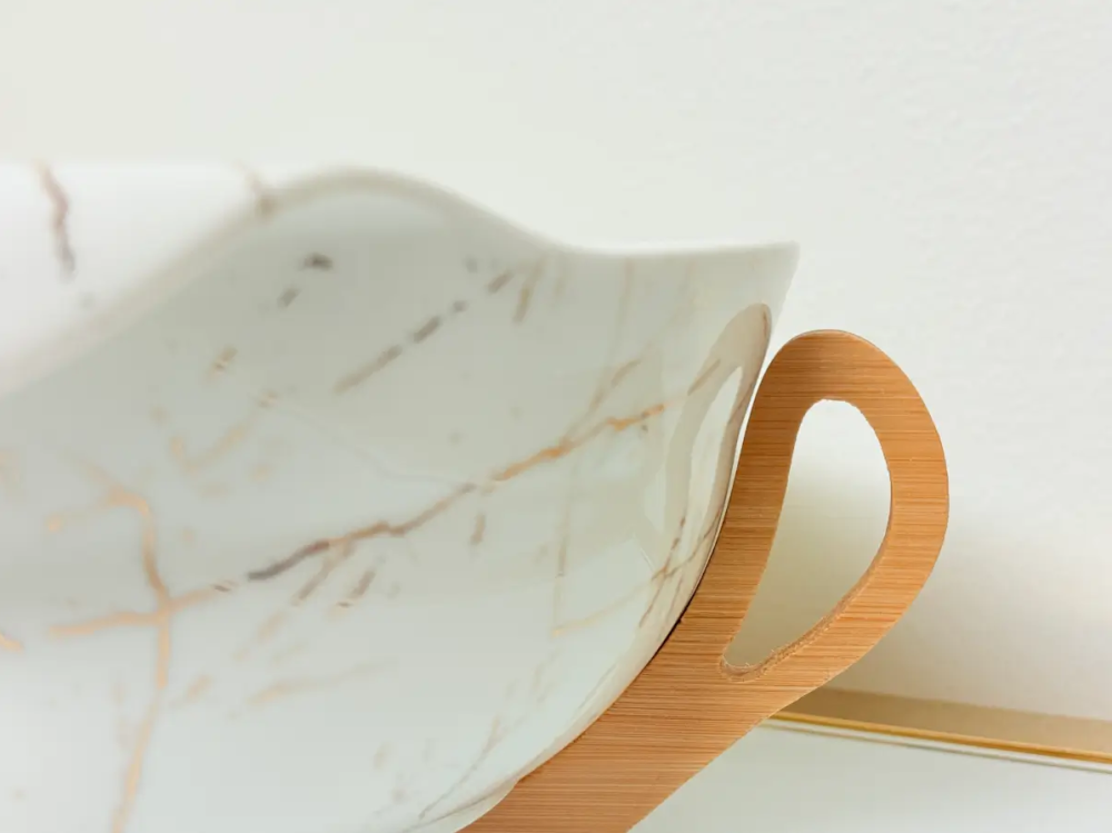 Комбинацията от здрава керамика и натурално бамбуково дърво съчетава практичност с модерна визия. Комплектът е идеален както за ежедневна употреба, така и за гости и специални поводи. Лесен за почистване, издръжлив и стилен – перфектен избор за всяко домакинство.
