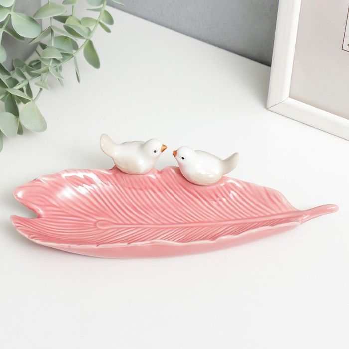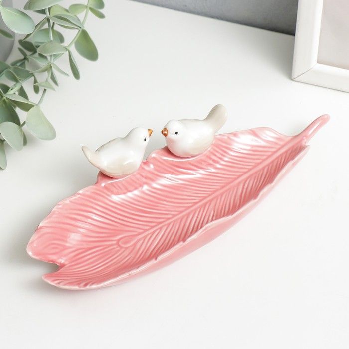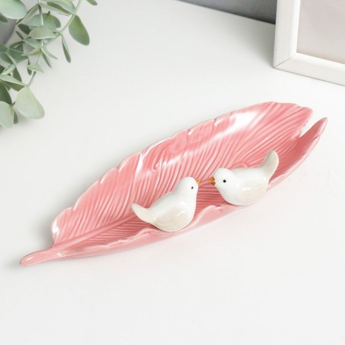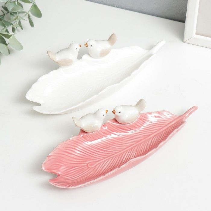 Ордьовърът е изработен от керамика във формата на дълго листо, декорирано с 2 бели птички.