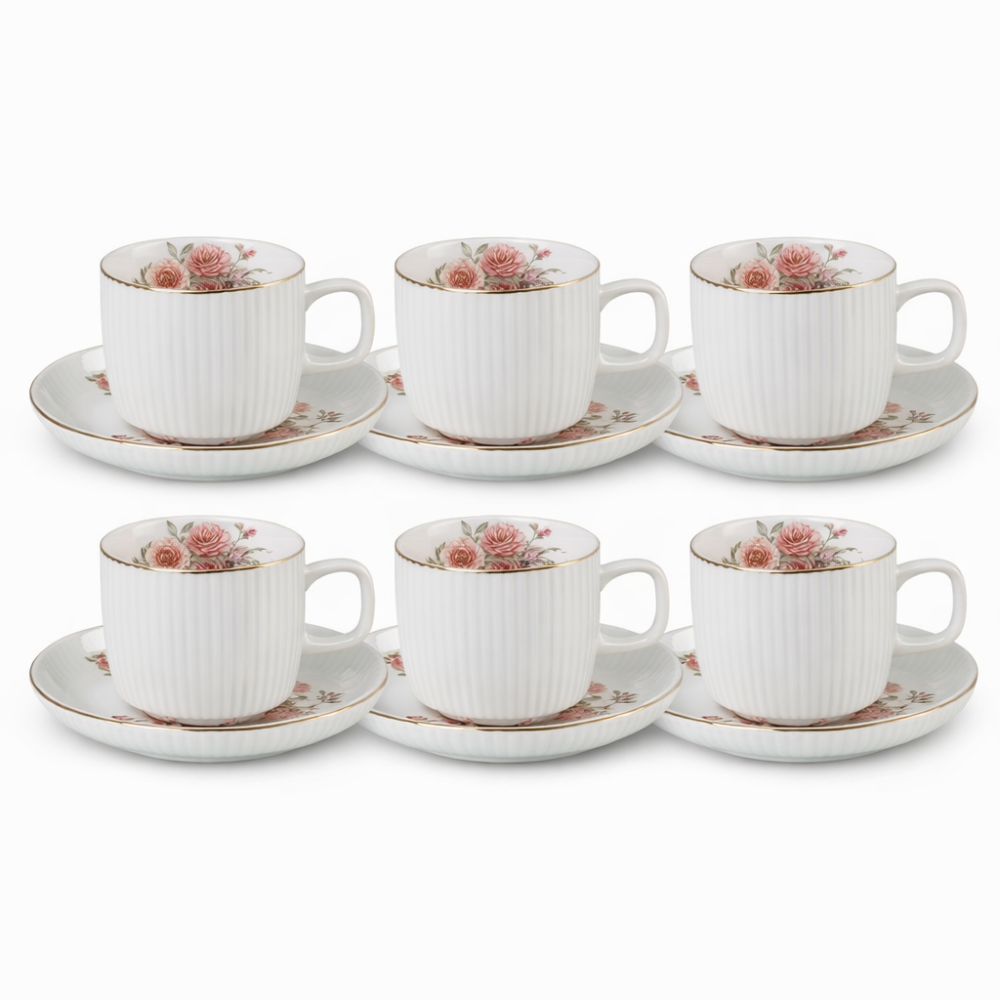 Керамичен сервиз за кафе или чай – 6 чаши с чинийки „Рози“