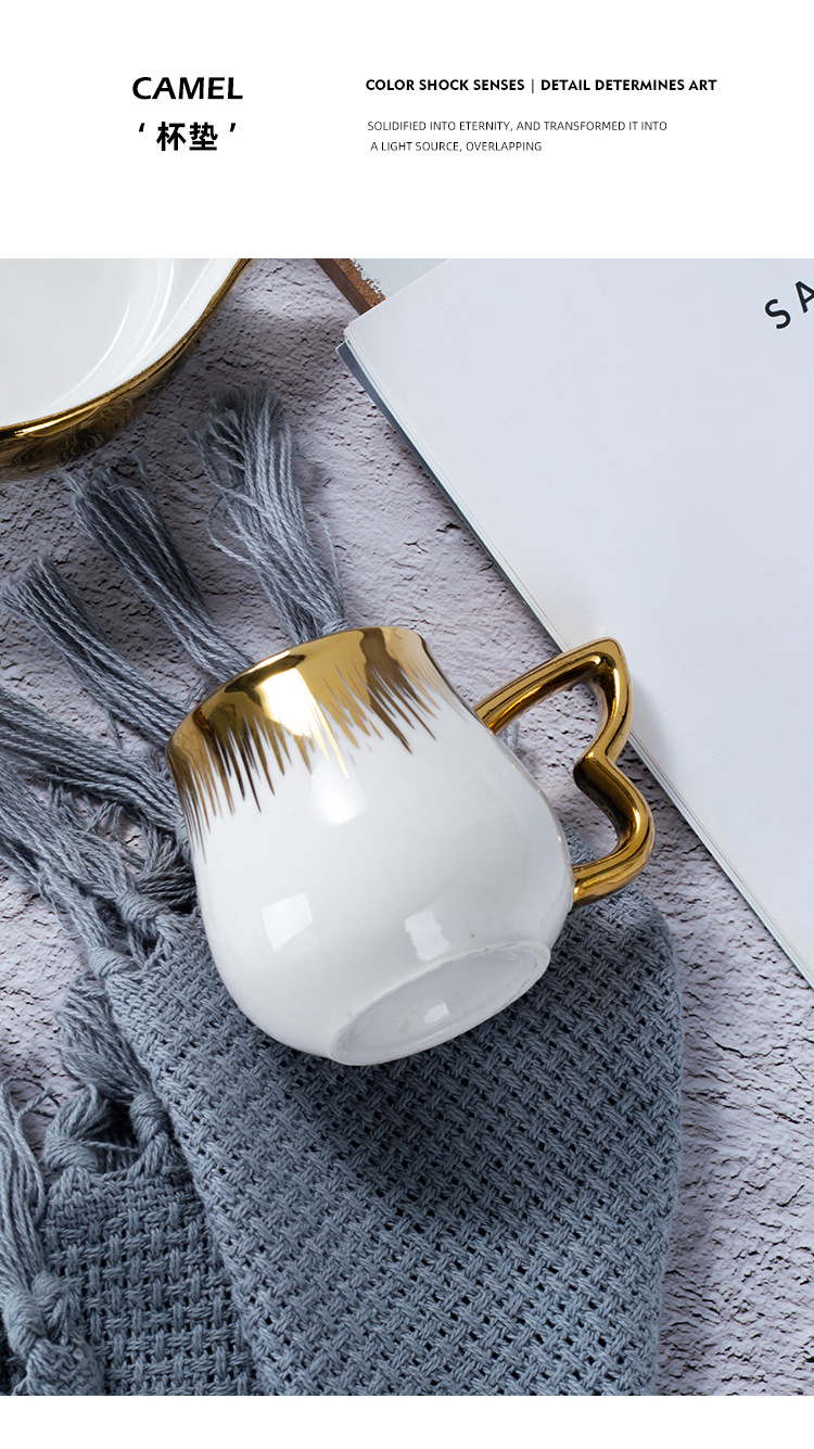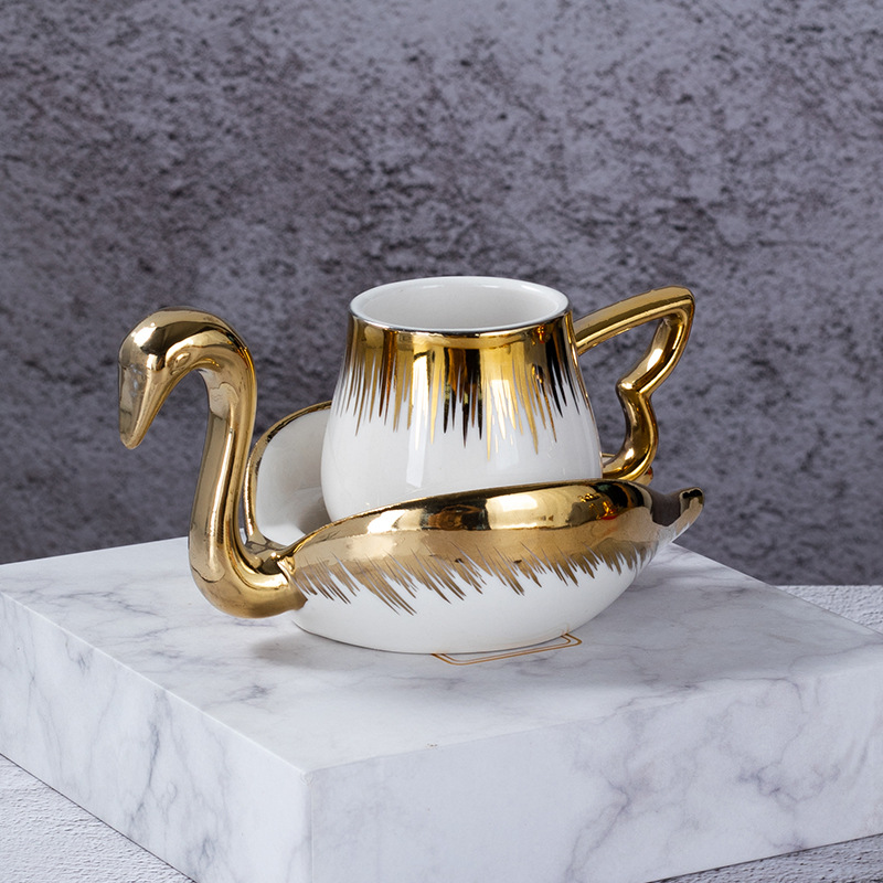 Керамичен сервиз за кафе "Лебед" – 6 чашки с чинийки и златни орнаменти