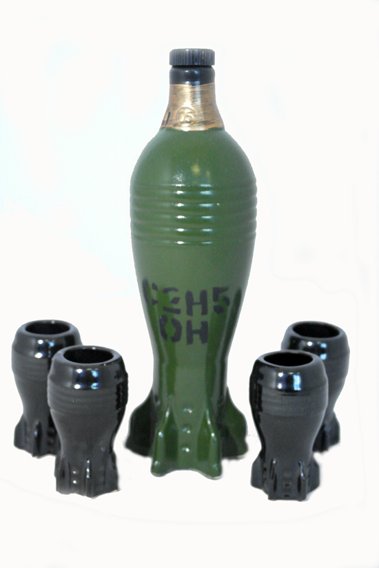 Керамичен сервиз за вино и ракия "Боеприпаси" в дървена кутия.