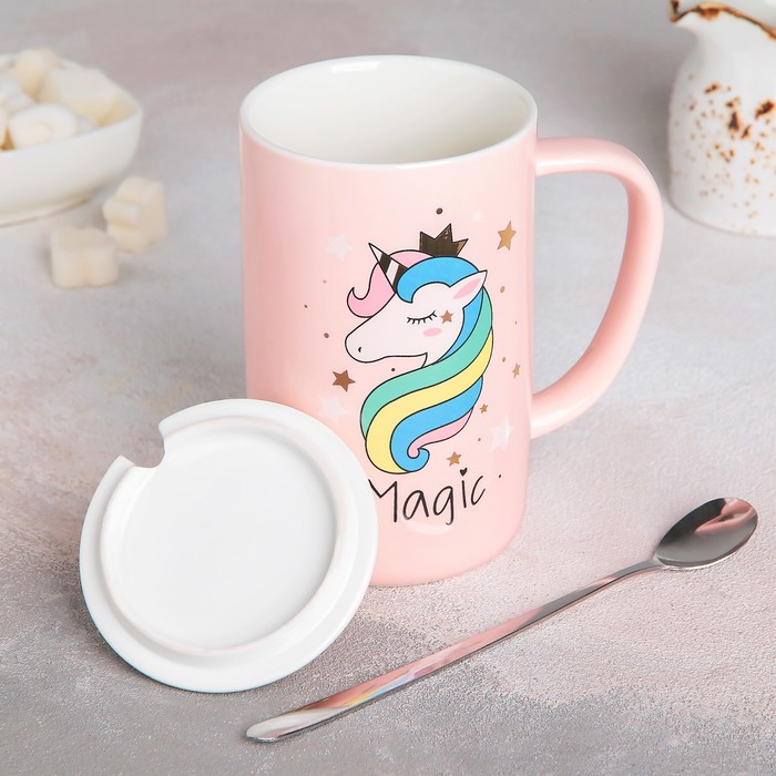 Керамична чаша "Еднорог" с капаче и мет. лъжичка