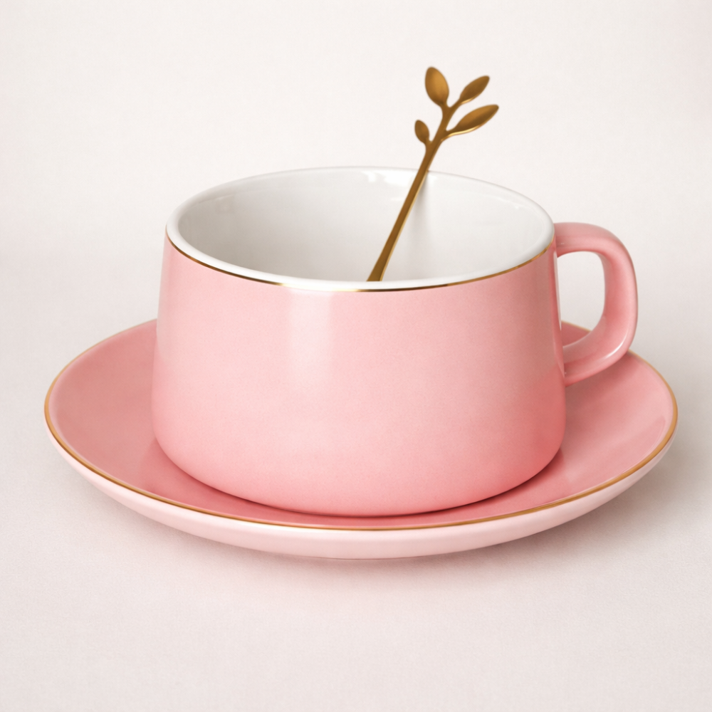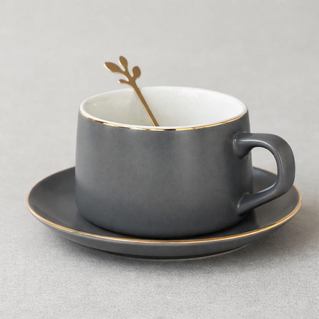 Керамична чаша "Elegance" с чинийка и метална лъжичка – стил и изисканост във всяка глътка