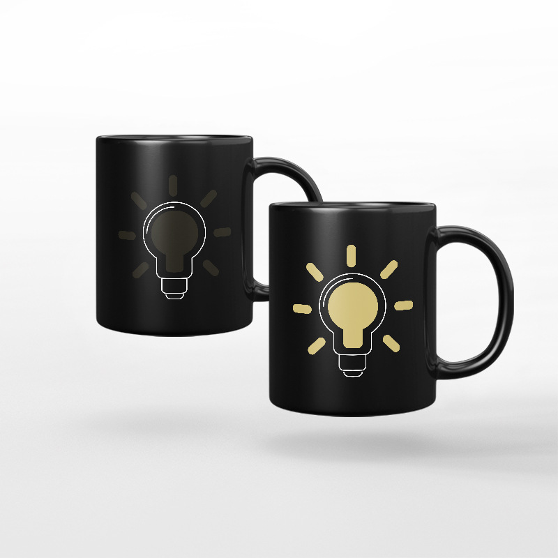 Когато чашата се напълни с топла течност, крушката се запълва и "светва" и става жълта.