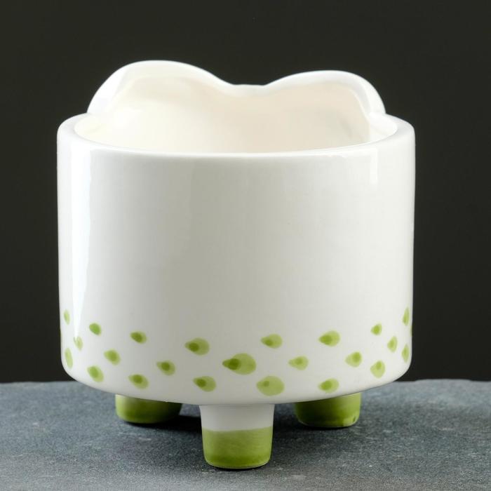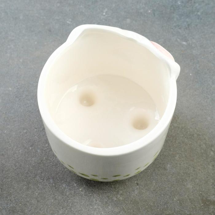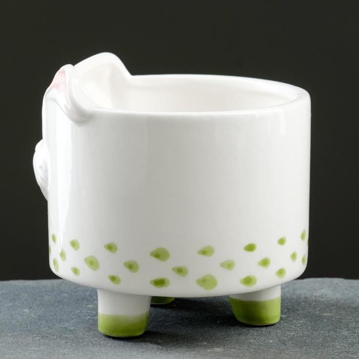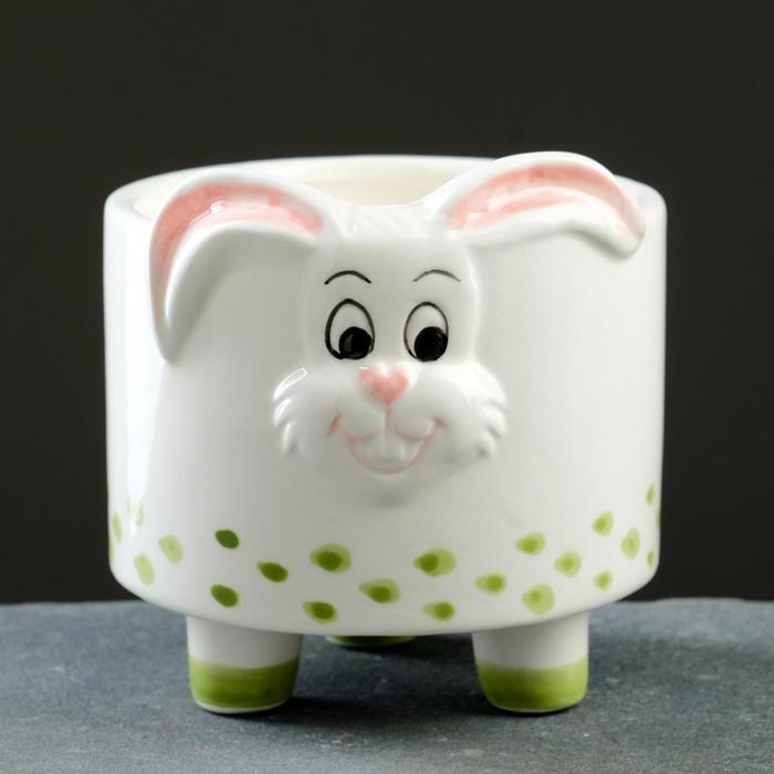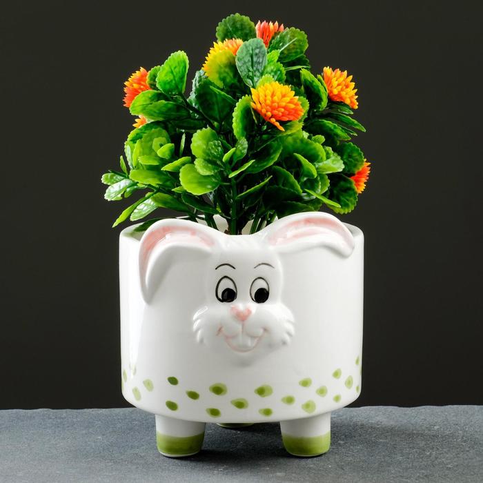 Кашпата е изработена от керамика в бял цвят във формата на зайче.