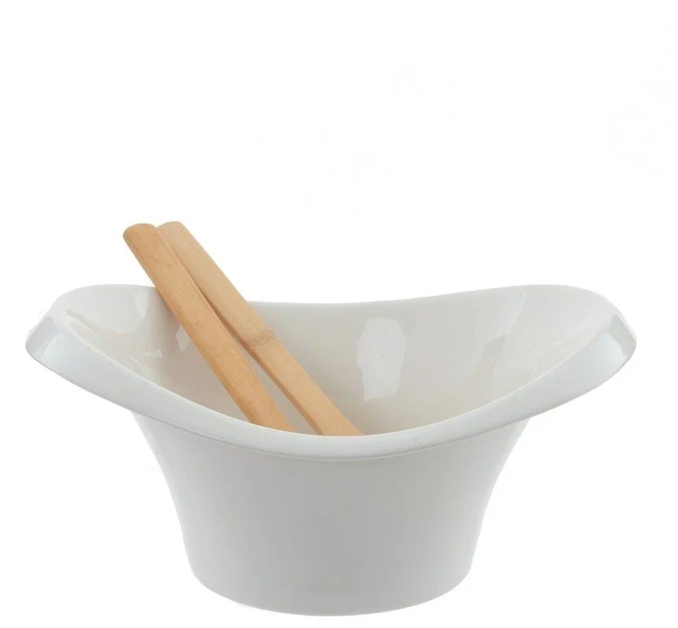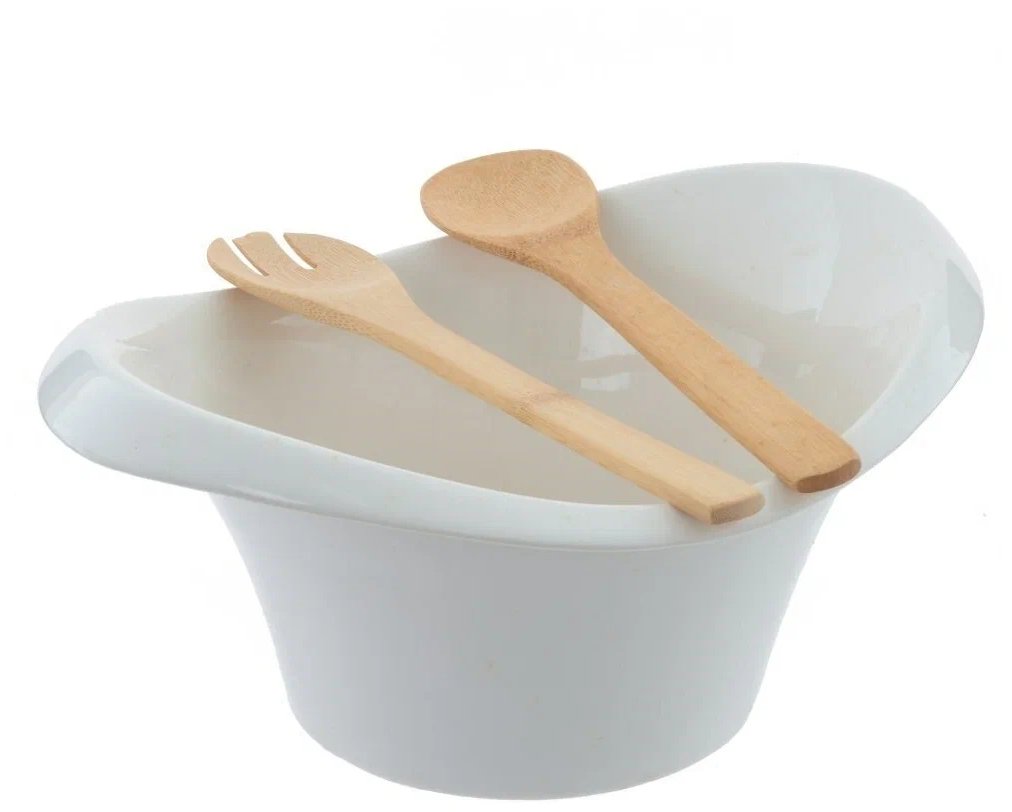 Керамична салатница с бамбукова поставка и прибори