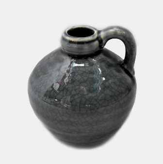 Сива керамична ваза, изработена в стил Винтидж, като имитира напукване.