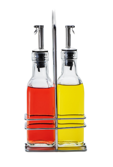 Търсите елегантен начин да съхранявате и сервирате вашето олио и зехтин? Комплектът от 2 бутилки по 170 мл с дозатори и метална поставка е идеалното решение за всяка кухня или трапезна маса.