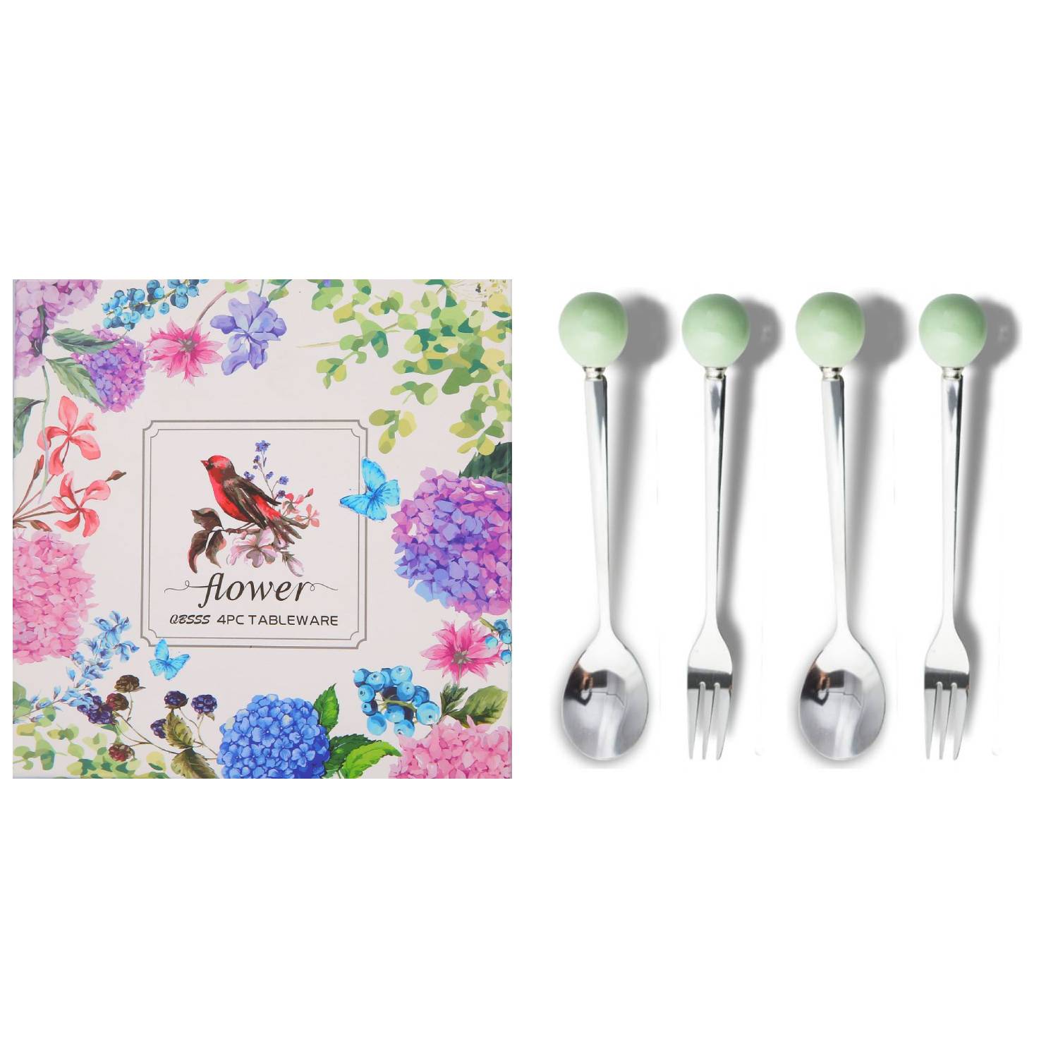 Комплект 2 лъжички и 2 вилички "Green Ball" в подаръчна кутия