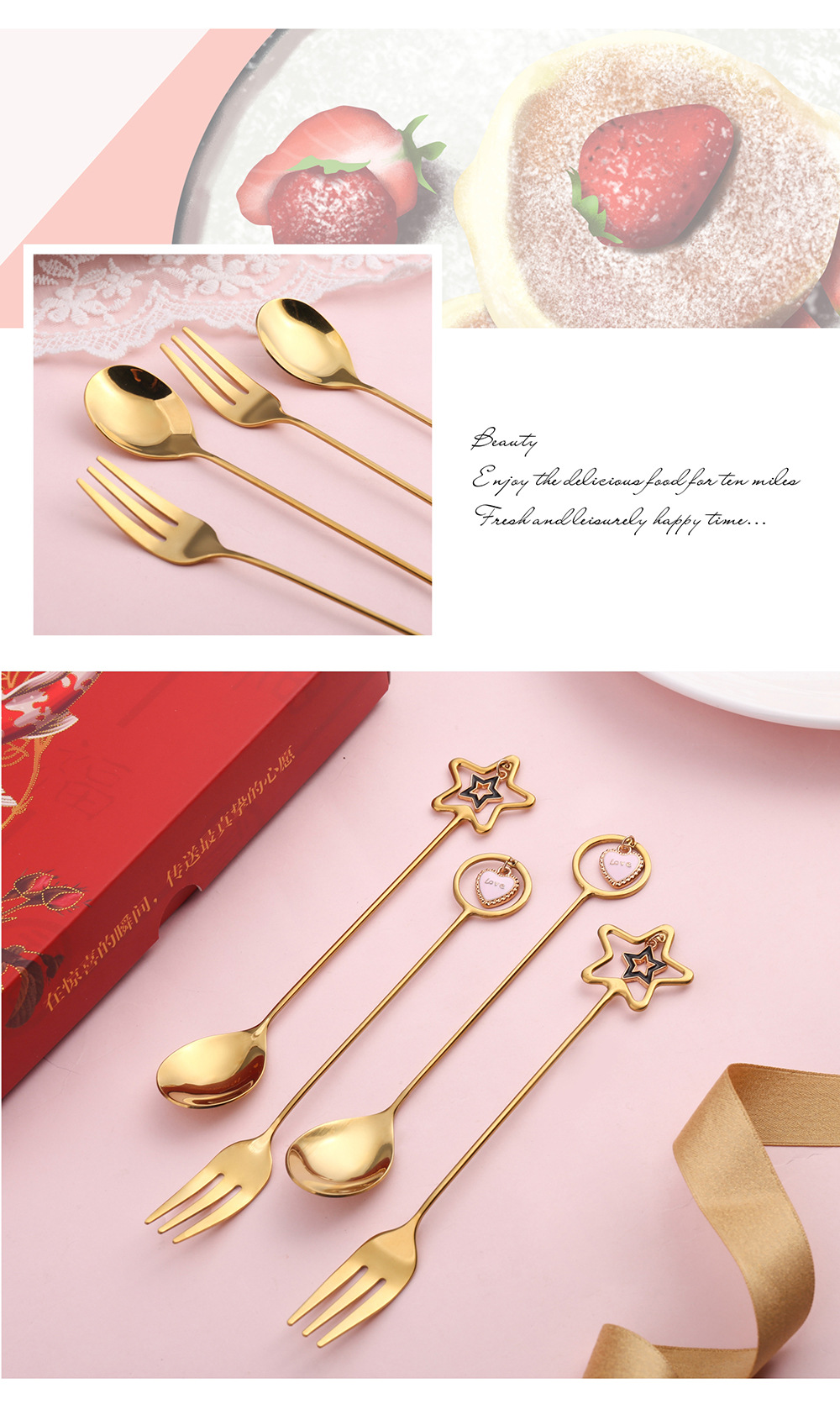 Заключение: Не се колебайте да добавите този чудесен комплект към вашата кухня или да го подарите на близък човек. Стилни, удобни и красиви, десертните лъжички и вилички "Сърце" са перфектното допълнение към всяка хранителна маса. Поръчайте ги сега и създайте незабравими моменти на наслада с любимите си десерти.